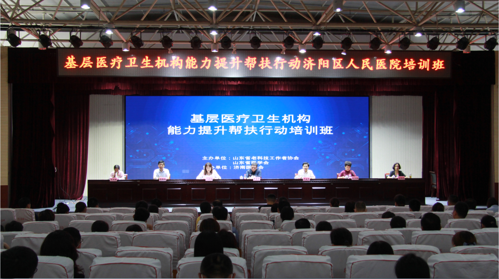 9月10日,是中国的教师节,在这个特殊而又重要的日子,由省医学会、省老科协主办的2020年线下首期基层医疗卫生机构能力提升帮扶行动培训班在济阳区人民医院举办。省医学会副会长、大健康资深专家指导服务团团长贾堂宏、济南市健康教育所党支部书记、主任秦冬梅、济阳区副区长牟晓丽、济阳区政协副主席、济阳区人民医院院长卢士平、济阳区卫健局局党组书记、局长杨德超等出席开班式。济阳区人民医院200余名基层医务人员参加培训。