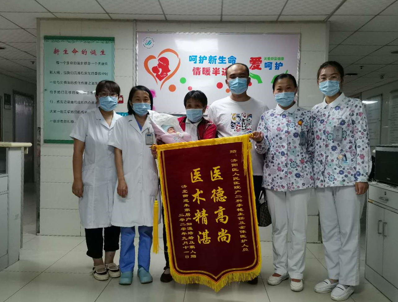 9月21日,产二科迎来了特殊的客人,温女士的家属抱着宝宝回到产二病房,特意送来锦旗以表谢意!