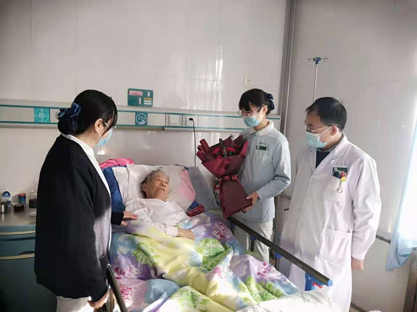 12月17日一大早,老龄办的工作人员就为患者李奶奶送来了一个大蛋糕。护士长杜芳得知是李奶奶的生日,特意订了一捧鲜花,带领着科室医护人员为李奶奶送上鲜花和生日的祝福,祝李奶奶健康长寿。在蛋糕,鲜花簇拥下的李奶奶高兴地像个孩子,李奶奶的家属也把这份喜悦同大家一起分享,感谢医护人员的辛勤付出,病房里一派其乐融融的景象,李奶奶也度过了一个特别的生日……