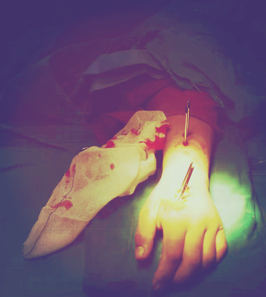 患者李先生,因高处坠落,导致左腕关节粉碎性骨折,伤势十分严重。副主任医师侯卫涛接诊后,仔细为患者查体,耐心安抚患者情绪。考虑到传统切开复位,需同时行掌侧及背侧切口,多个细克氏针固定,以维持复位状态,手术操作难度大,时间长,创伤大,很有可能因骨折粉碎,术中无法完全复位,同时又大大增加了骨折不愈合的几率。在与主任医师卜祥朋主任仔细斟酌和讨论后,决定给予目前最微创、可行的方案——腕关节闭合复位外固定架固定术。副主任医师侯卫涛积极完善术前准备,于1月23日上午为患者实施手术,术中置入外固定架,保证腕关节尺偏位不断的牵引复位,配合手法整复,C型臂实时透视,最终桡骨远端关节面基本平整,掌倾角及尺倾角基本恢复,历时两个多小时,手术顺利完 成,患者安返病房,目前正在进一步康复中。
