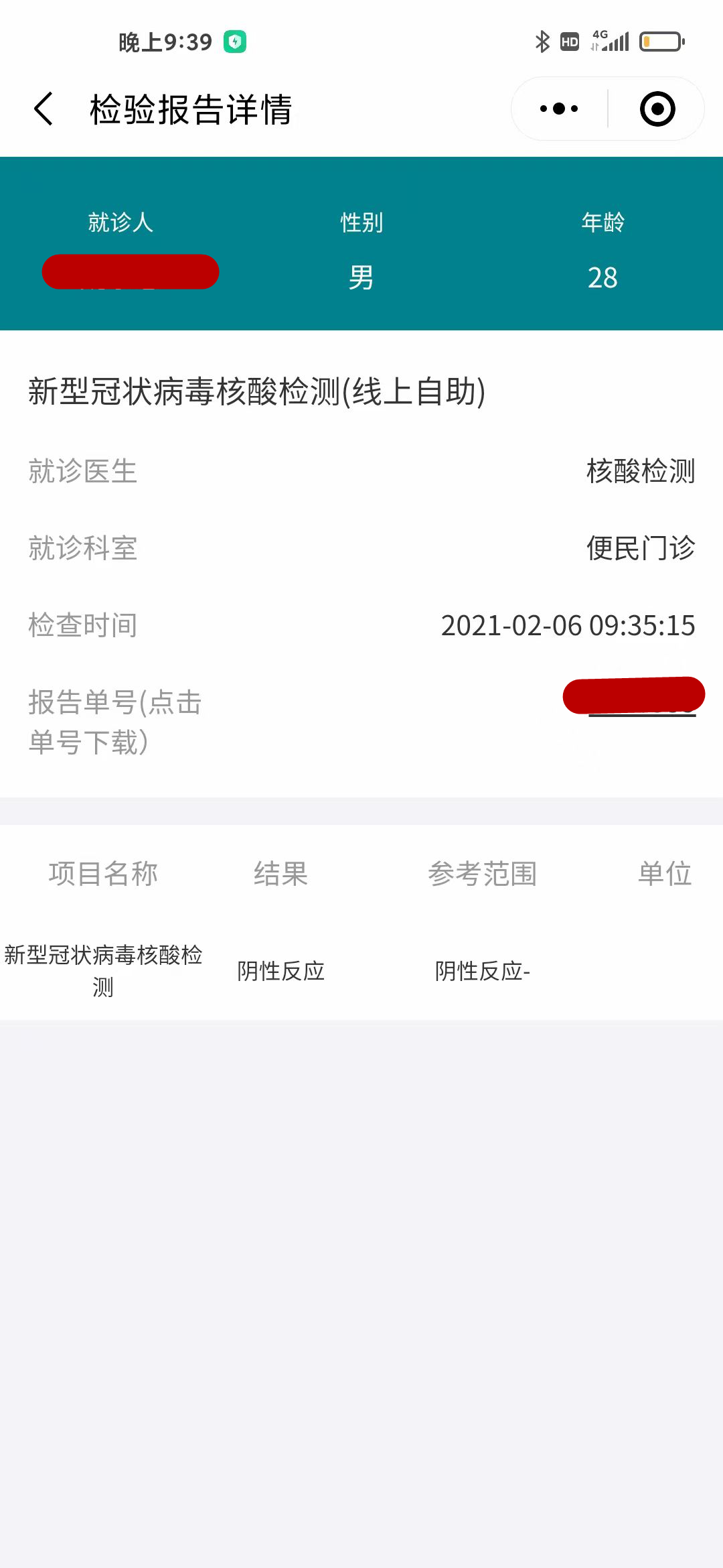 答:电子报告单可在医院微信公众号→个人中心→掌上医疗→报告查询,查看和下载(电子健康卡用户可直接查看和下载,未绑卡用户请输入姓名、身份证号、卡号查看和下载)。您可自行打印,也可到医院采样点自助打印机处,自助打印纸质报告单。