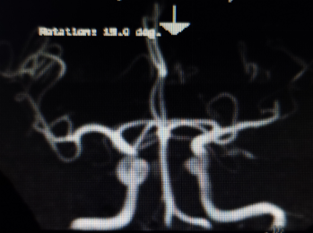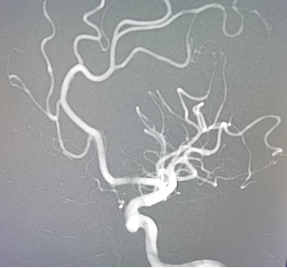 2021年03月01日患者王先生因突发“右侧肢体瘫痪”急诊入院,病情危重,急诊科立即启动脑卒中中心绿色通道,紧急请脑卒中秘书魏华明主治医师会诊,查体结果示:患者处于昏迷状态,完全失语,右侧肢体完全瘫痪,NIHSS评分15分,有急诊取栓的指征,魏大夫立即联系磁共振室完善颅脑血管初步检查,证实了患者为左侧大脑中动脉M2段闭塞所致脑梗死(图一)。家属非常着急,犹豫不定,魏大夫反复向患者家属交代病情,机械取栓越早越好,患者家属最终决心做急诊机械取栓治疗。
