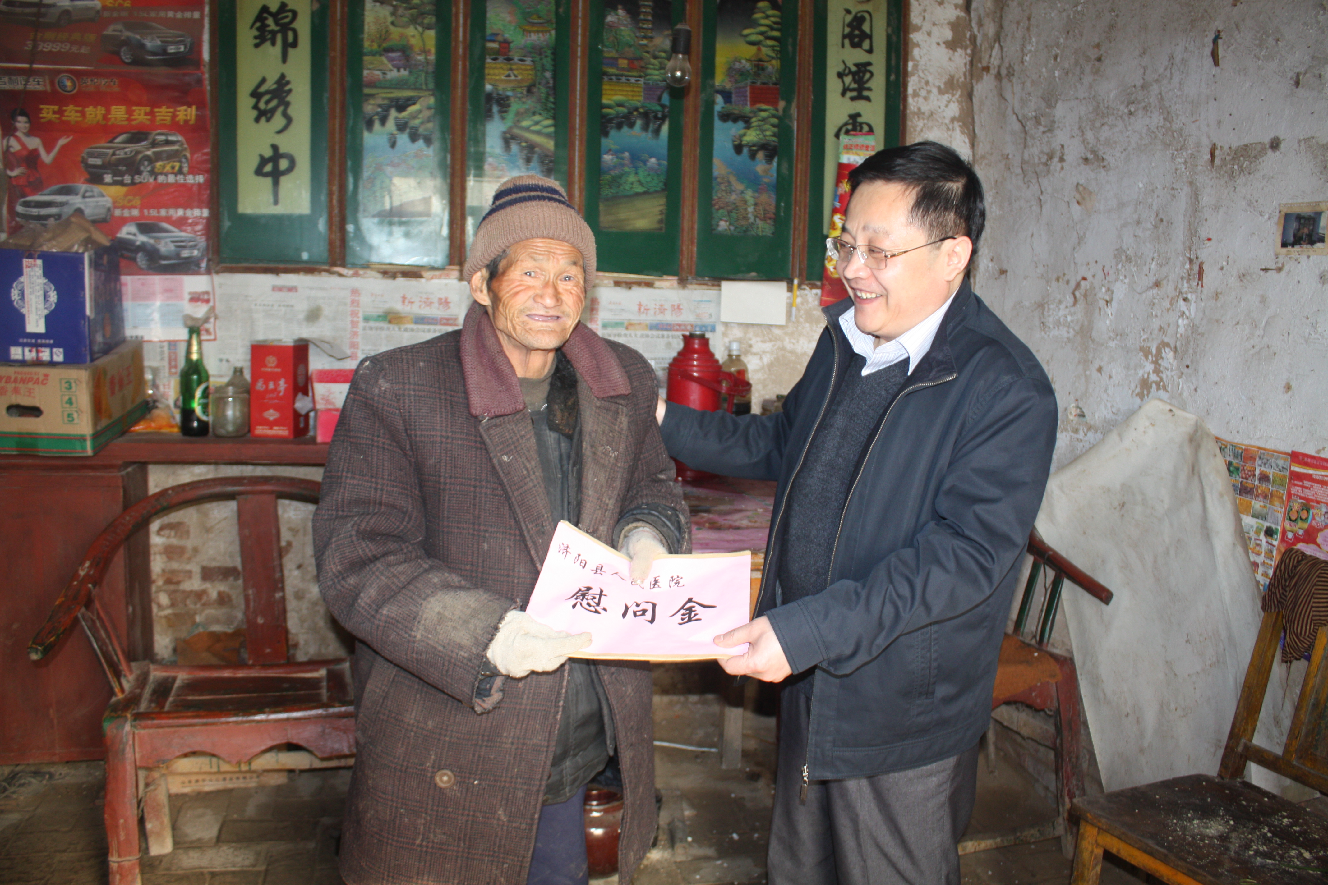 区政协副主席、院长卢士平、医院党委副书记张玉海分别到帮扶村范家村和大杨村为孤寡和久病的贫困户送上慰问金2000元和医疗救助金2000元;