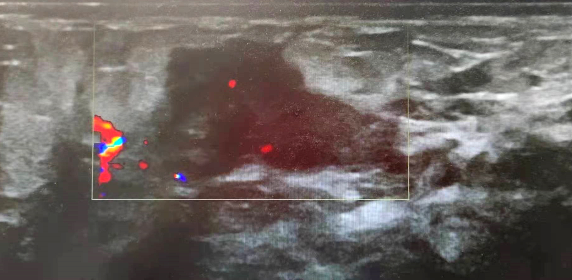 近日,我院妇科门诊主治医师罗桂兰在为患者查体时,发现乳房处凸起的包块,不像是单纯的乳汁淤积所致,遂找到超声室科主任郑岩岩主治医师行地毯式超声扫查,诊断为右乳包块(BI-RADS 4级)腋窝淋巴结肿大,遂收住院,进行了手术治疗,手术顺利,现在康复中。