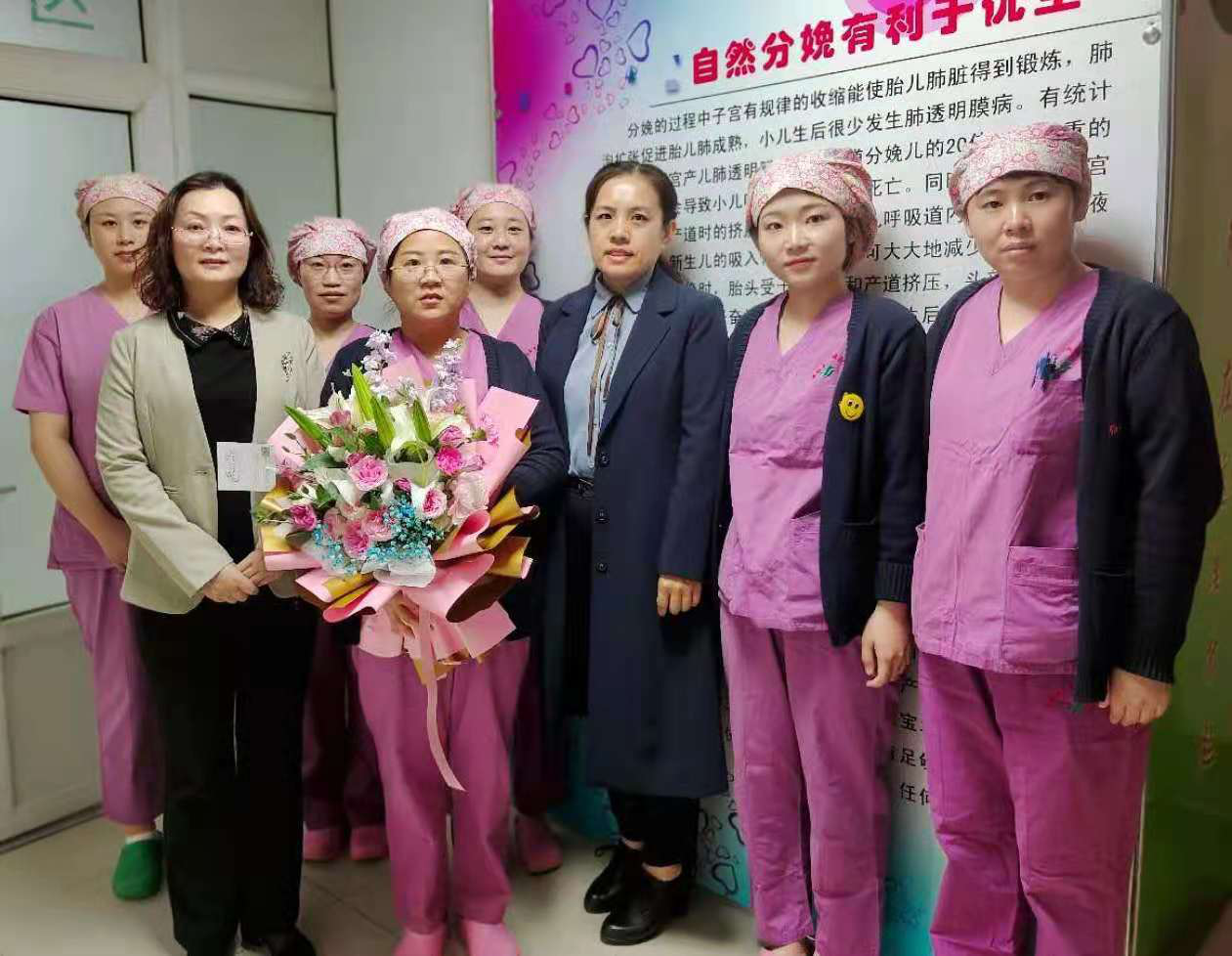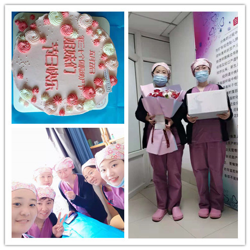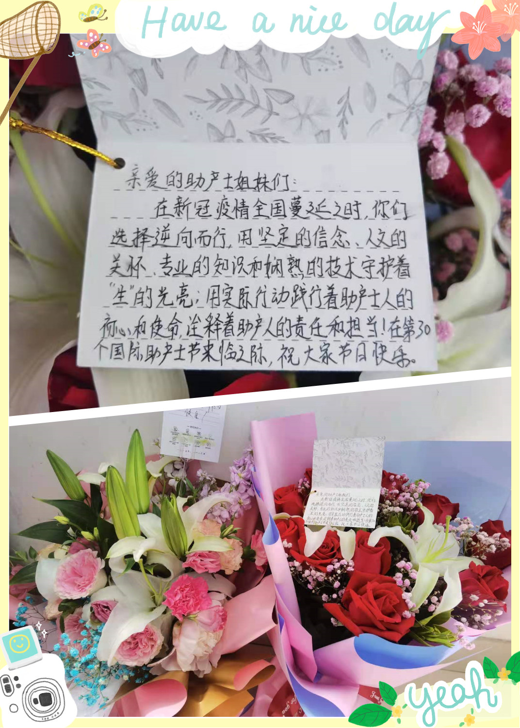 产房主任李俊霞及护士长王玉敬也为姐妹们送来鲜花与蛋糕