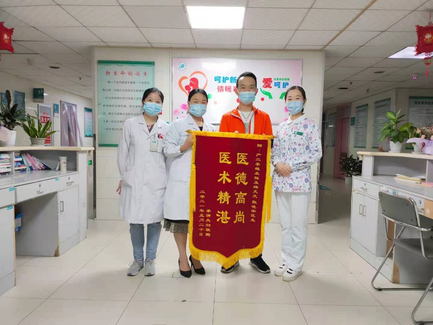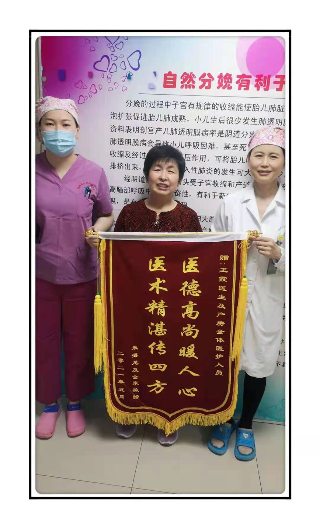 5月22日上午,张女士委托其家属将一面写有“医德高尚暖人心 医术精湛传四方”的锦旗送入产房,感激产房人员的暖心服务及专业救护。