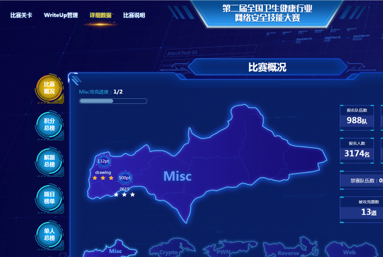 本次大赛,全国共988家医院,3174名选手参加,分为线上初赛和线下决赛两个环节,设有Web漏洞与渗透、软件逆向、数据包截取破译、二进制漏洞挖掘和密码学等题型,全面检验参赛选手对医疗领域网络安全知识和技能的掌握情况和应用水平。