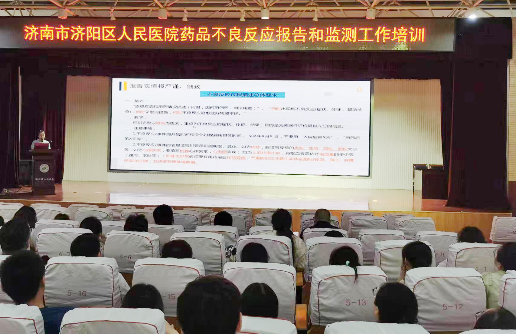 主管药师胥纯静进行了授课培训,详细解读了药品不良反应报告和监测工作相关法律法规,并从报告质量控制要求及操作规程、新严报告分类准确率、原患疾病的填写、不良反应的过程描述、上报及时性等多方面进行了深入剖析。