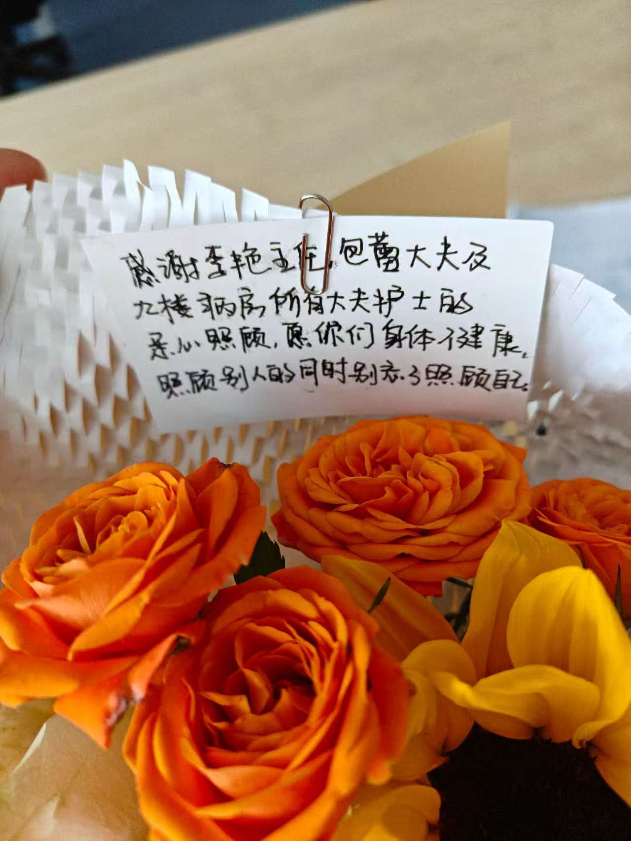 为表达内心的感激之情,张女士特意为医护团队送来了鲜花。患者的信任与肯定,是对医护人员临床工作的最大支持,也激励着大家不断奋进、持续提升医疗水平。
