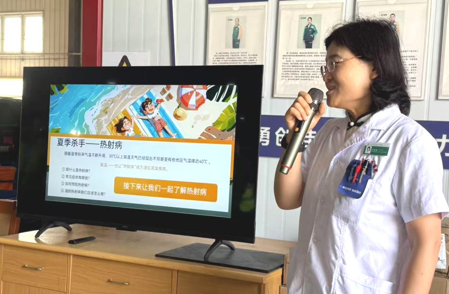 盛夏来临,为响应“健康中国”行动号召,切实保障高温作业人群健康,7月8日,济阳区人民医院神经内科江新媛副主任医师受邀走进济阳邮政快递仓储配送中心,为快递员、分拣员开展防暑降温与急救知识专项培训,将专业医学知识转化为一线劳动者的“防暑护盾”。