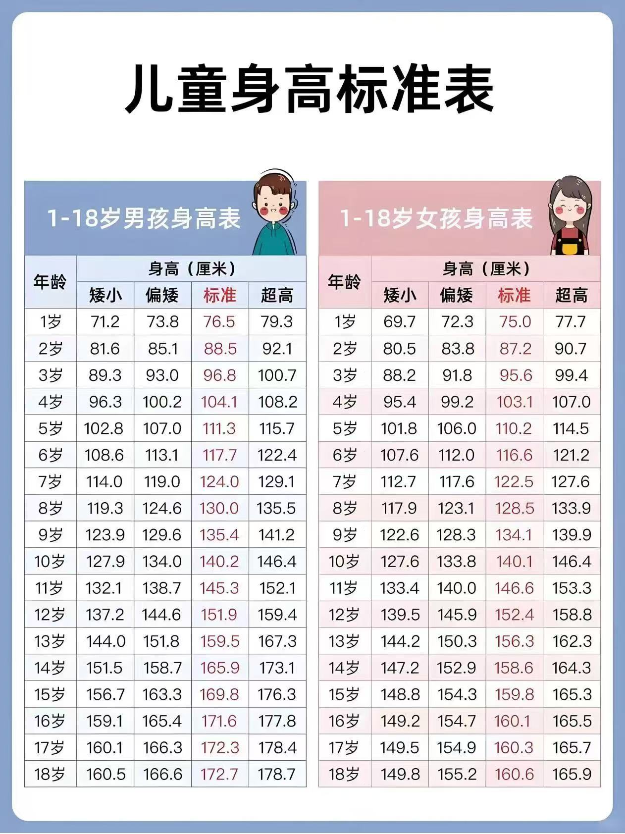 2、身高处于P25以下(即低于同龄儿童平均水平)及P90以上(即显著高于同龄儿童)【对比文末图表可自查】