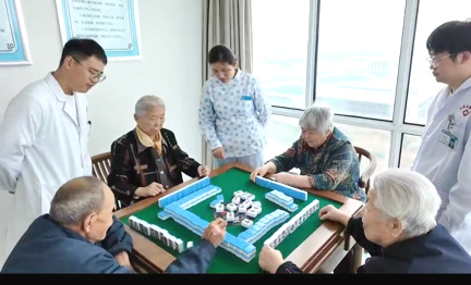 在医养服务中心,老人们的生活娱乐精彩纷呈。有的两两一组参与手拉球游戏,既考验了参与者的协调能力与反应能力,同时达到了锻炼和娱乐的双重目的,老人脸上纷纷洋溢着运动带来的喜悦;有的则沉浸在棋牌室,与牌友欢聚一堂,其乐融融;有的则中意手工制作活动,他们充分发挥想象力,制作出一件件精美的手工作品,现场气氛温馨而活跃。中心还组织老人们齐聚观影室,共同观看了养老爱老敬老公益节目。节目中感人至深的故事和精彩的表演,让老人们感受到了社会对老年人的关爱与尊重,纷纷鼓掌称赞。用餐时间,中心特别推出了丰盛的“欢度重阳”团圆饭。一道道美味佳肴摆满餐桌,老人们围坐在一起,品尝着美食,分享着生活的点滴,感受着节日的温馨与快乐,欢声笑语回荡在餐厅。