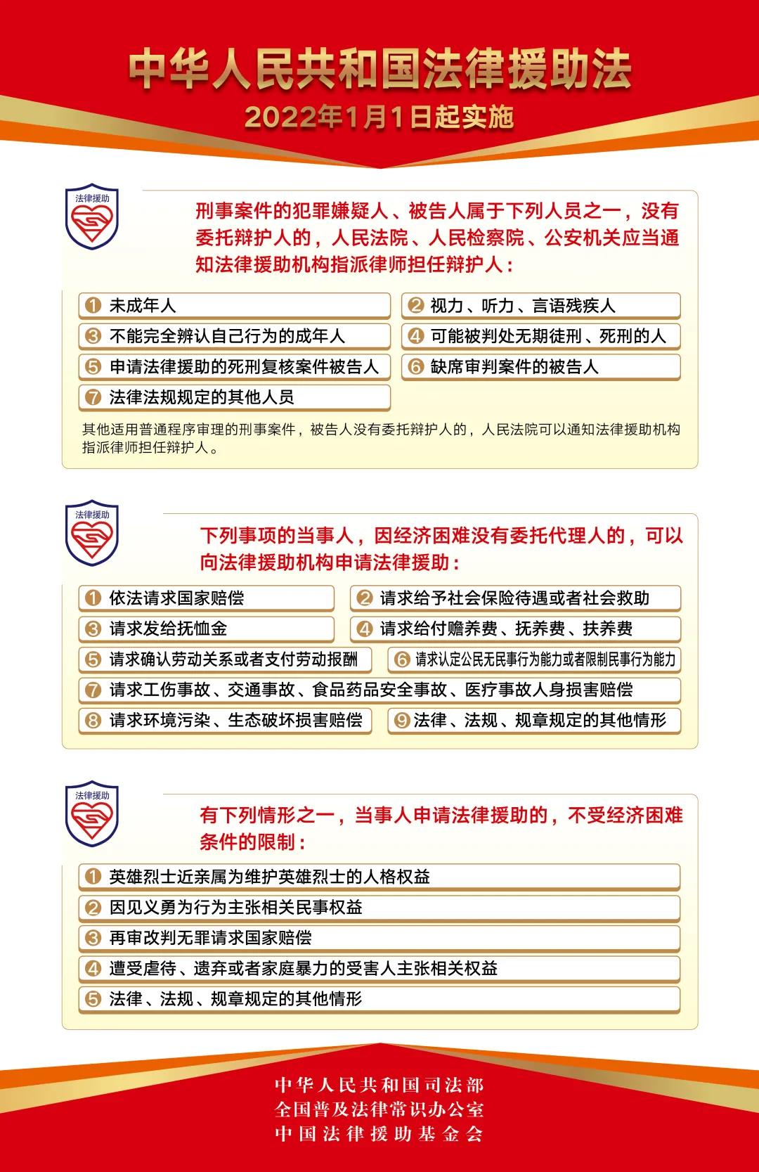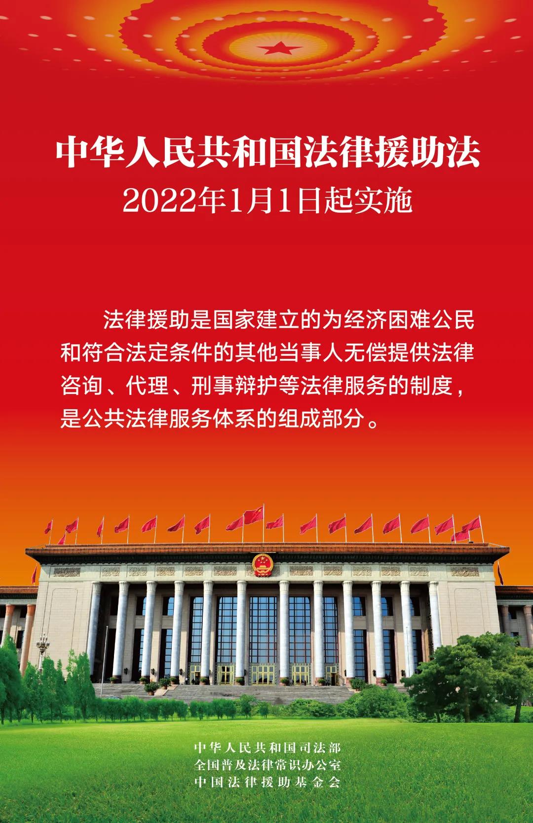 《中华人民共和国法律援助法》已由中华人民共和国第十三届全国人民代表大会常务委员会第三十次会议于2021年8月20日通过,将于2022年1月1日起施行。