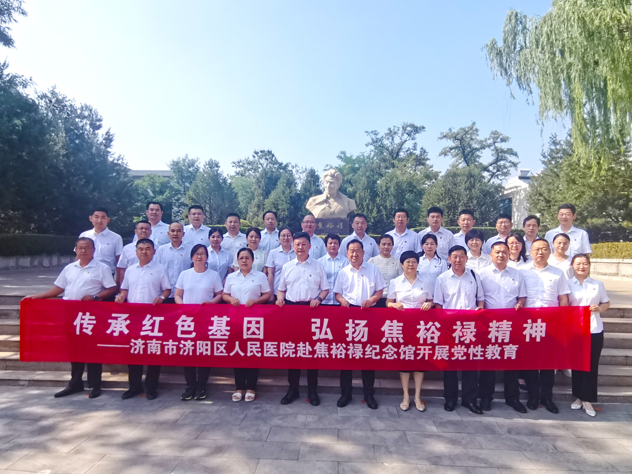 为扎实开展党纪学习教育,进一步引导党员传承红色基因、坚定理想信念、汲取奋进力量、筑牢拒腐防变思想防线,6月15日,济南市济阳区人民医院组织医院领导班子成员、党支部书记以及优秀党员40余人赴焦裕禄纪念馆开展“传承红色基因 弘扬焦裕禄精神”党性教育活动。