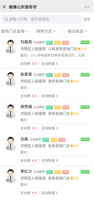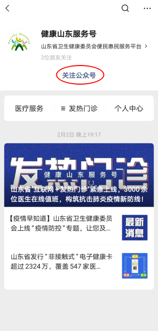 健康山东服务号,发热咨询门诊上线啦