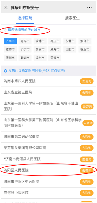 确定地区,选择济阳区人民医院