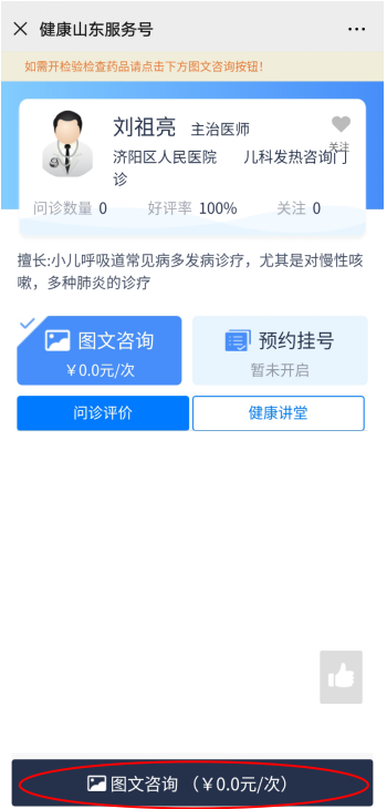 选择医生之后,进行“图文咨询”