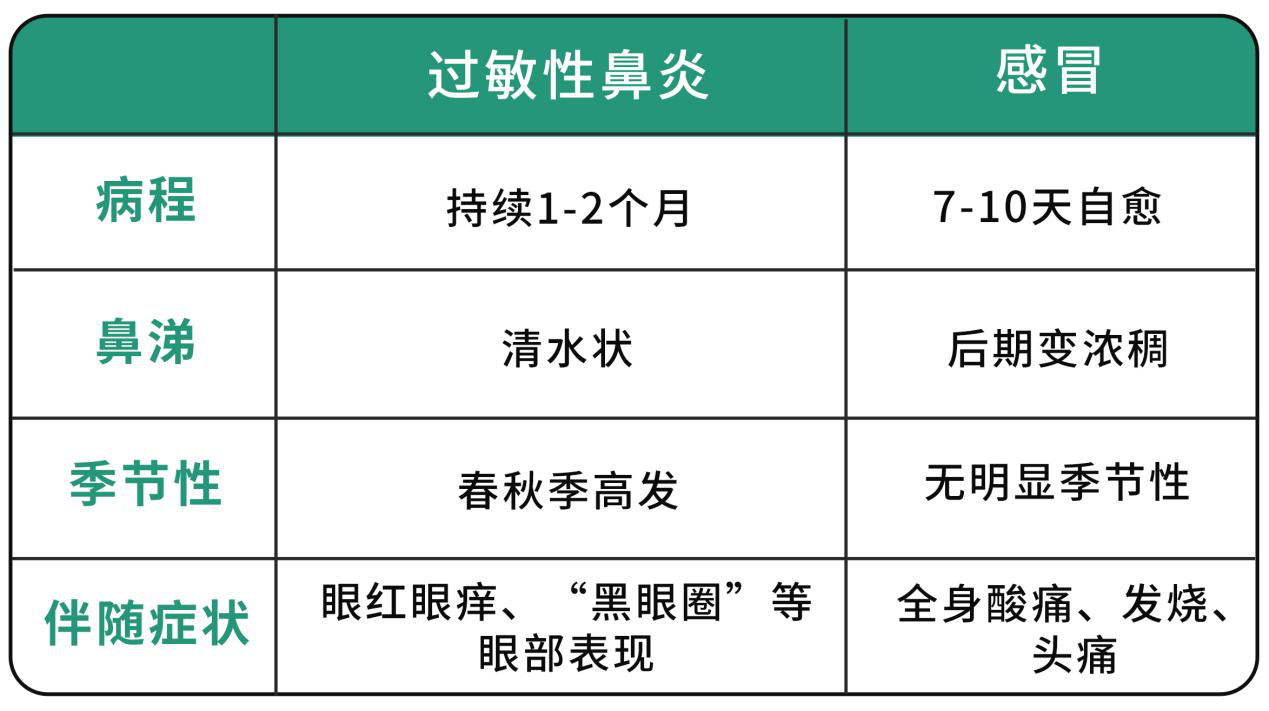 过敏性鼻炎:无发热,症状反复,清水鼻涕+鼻痒,可持续数周甚至更久。