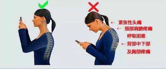 如果长时间保持这一姿势,那么就会出现颈部不舒服、疼痛、僵硬以及头痛等症状甚至损伤,即出现“手机脖”