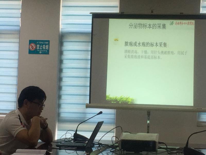 此次培训特邀请综合外科杨金国医生和细菌室王文斌医生主讲。杨金国医生讲解了手术切口感染的诊断标准,并从手术前、手术中和手术后三个方面详细讲解了手术部位感染的防控措施。王文斌医生为大家讲解了手术切口感染的细菌培养标本采集方法和意义。