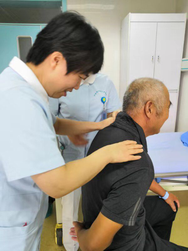 综合内科专门组织“颈椎分筋”相关培训。护士长刘桂荣为大家讲解了理论知识及按摩手法,每位护士亲身体验手法、力度,精确掌握按摩部位,相互切磋,共同进步。在熟练掌握的基础上,根据病情需要为患者进行按摩理疗,头部按摩减轻病人头晕头痛症状;肩颈按摩减轻患者肩周活动受限,酸痛症状;按摩腹部,解决患者便秘、腹胀等不适情况,让患者身体舒适的同时,按摩过程中的相互沟通,使患者精神状态得到了放松,促进了病情好转,也得到了患者的良好反馈。颈椎分筋的初见成效让大家对科室一品一科项目充满信心。