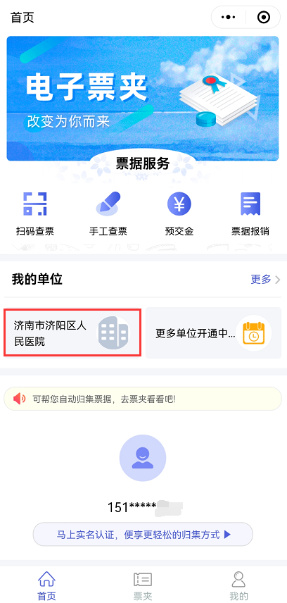 绑定登录后在“我的单位”中选择“济阳区人民医院”