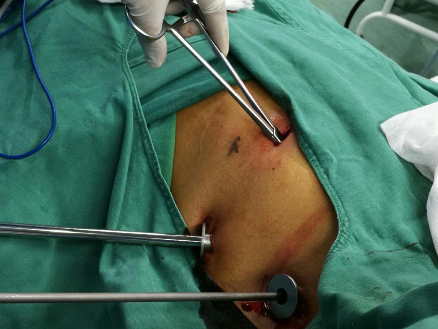 近日综合外科胸外专业组独立完成首例胸腔镜下胸腺肿瘤切除术,标志着我院胸外科专业在前上纵膈肿瘤腔镜微创手术再上新的台阶。