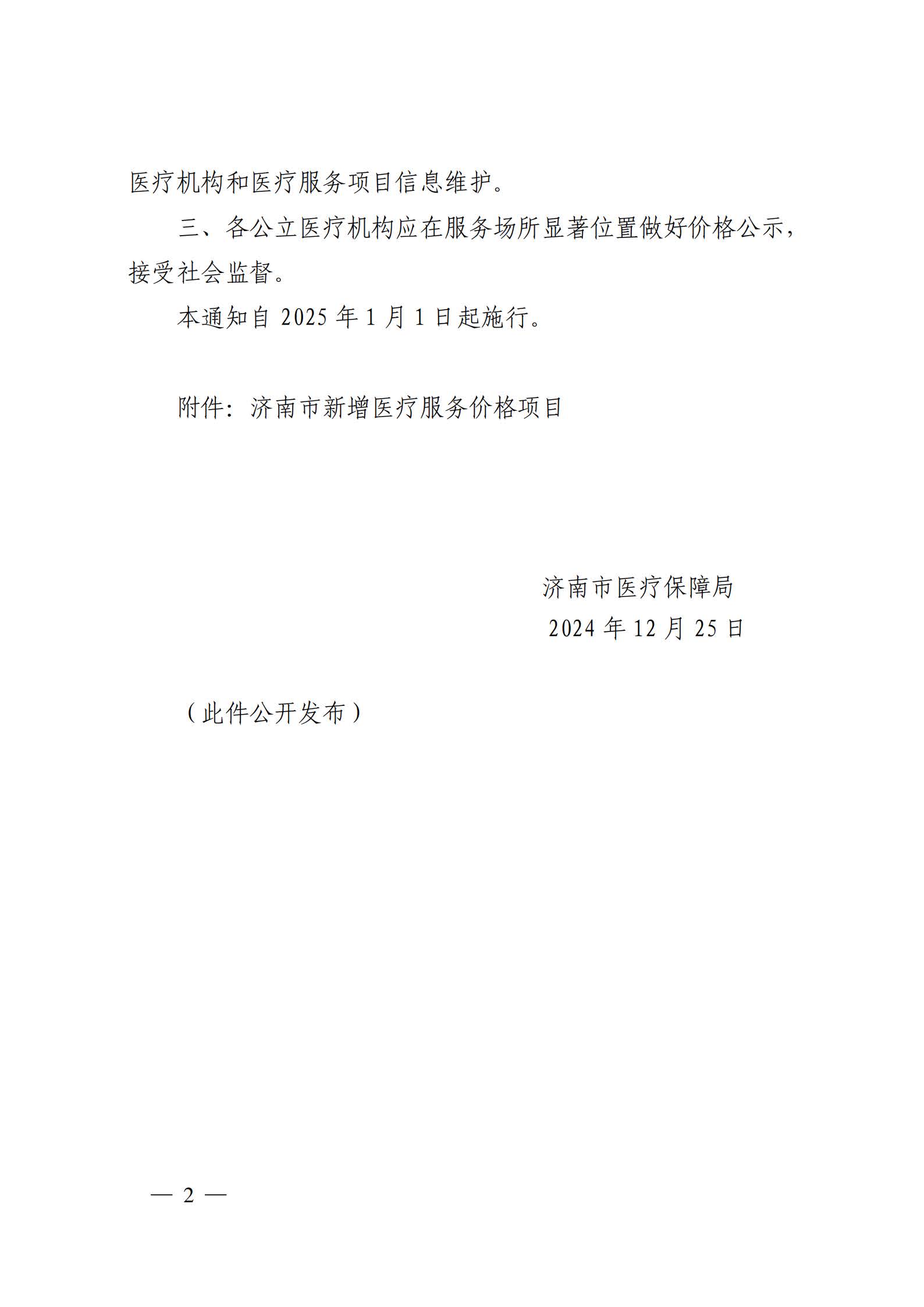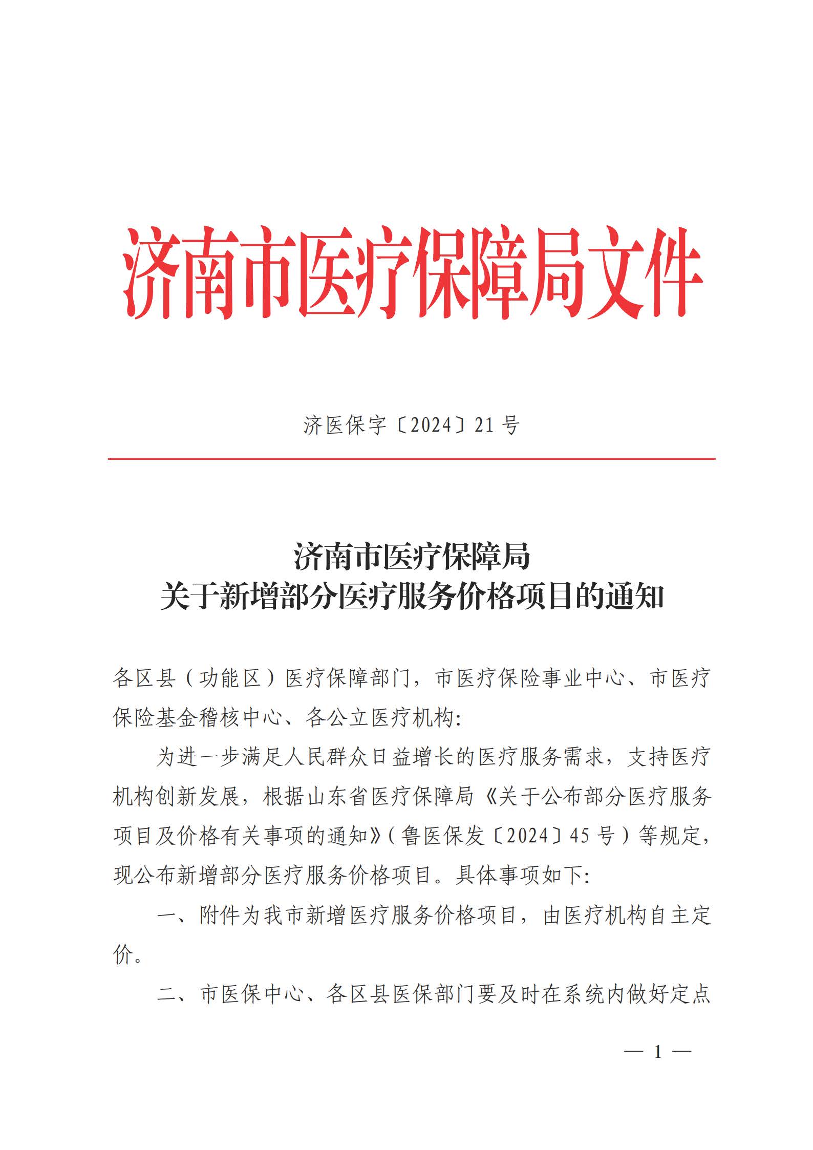 济南市医疗保障局关于新增部分医疗服务价格项目的通知