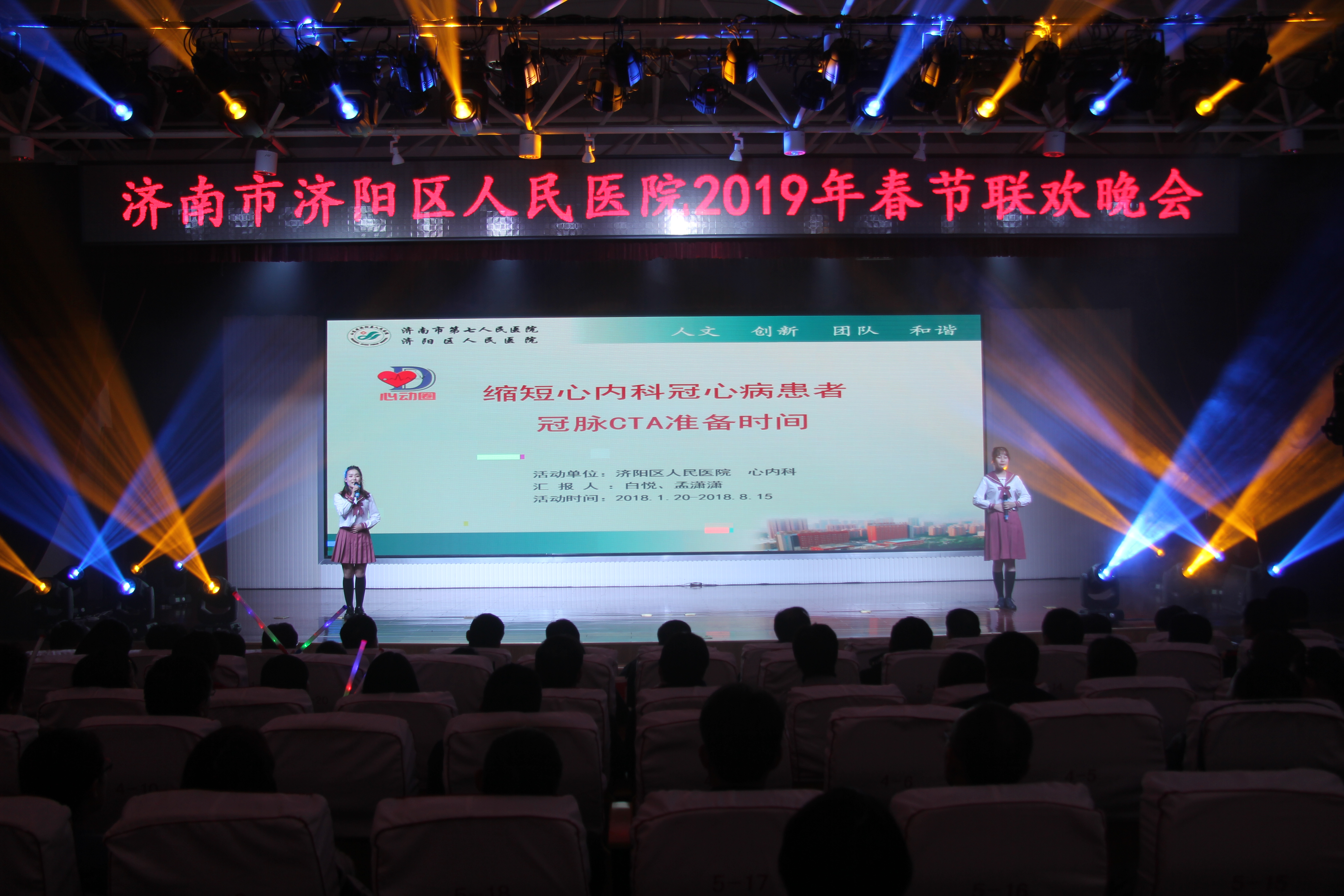 此次晚会济阳电视台专业主持人王璇璇、王延阔联合医院朱宝慧、肖法阳共同主持,节目新颖,形式多样,乐器演奏、歌舞表演、小品、相声、歌曲串烧等节目形式让观众耳目一新。