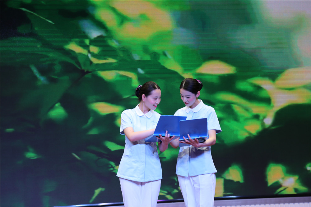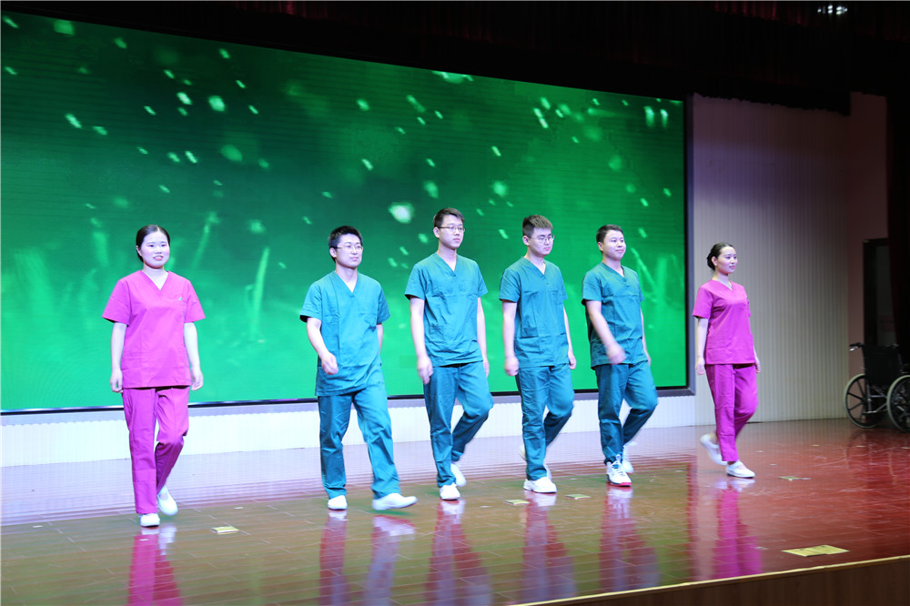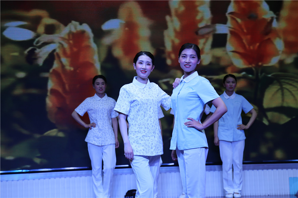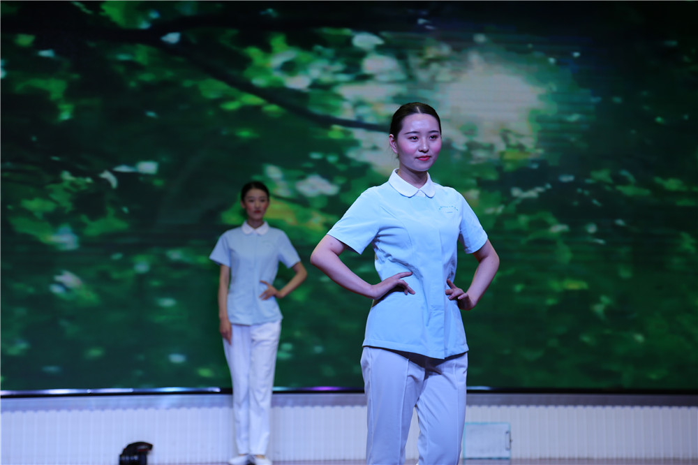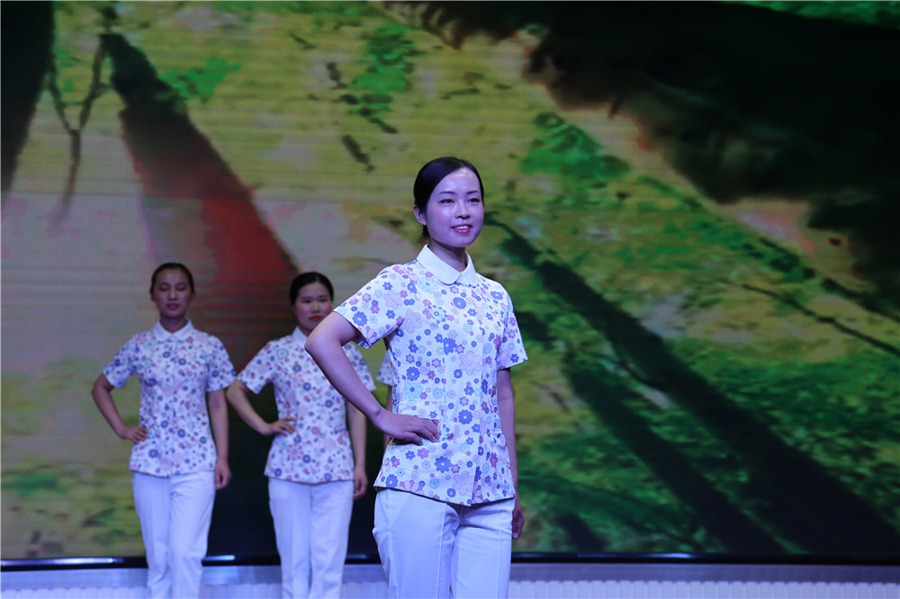 脱帽仪式后,身着分体式新款护士服的护理人员们迈着轻盈的步伐在舞台上依次亮相。