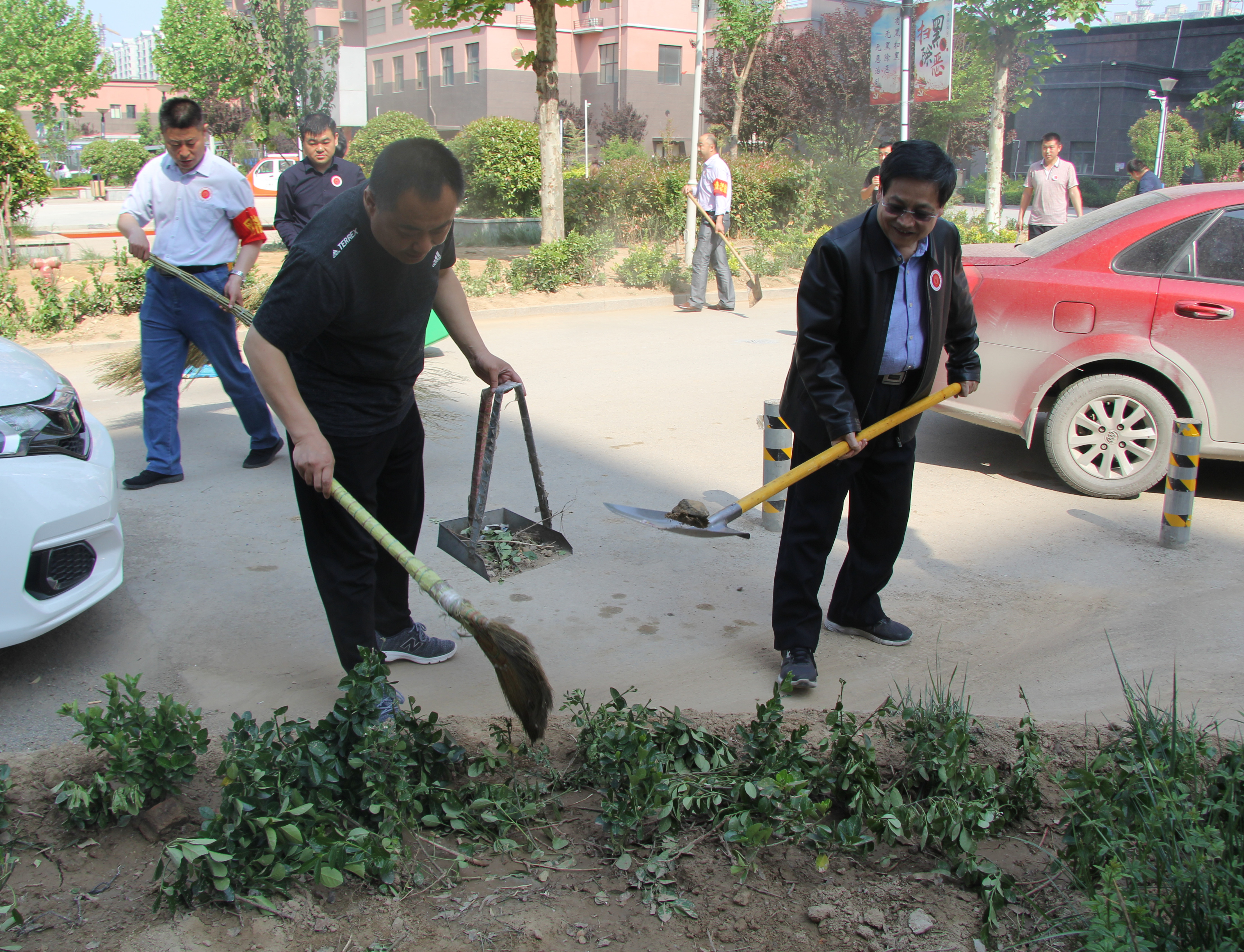 为迎接国家卫生城市复审,加快推进美丽幸福社区建设,用实际行动为国家级卫生城市复审打call,5月11日上午,我院领导班子成员,行政职能后勤科室人员及青年文明号集体、团员青年代表共百余人走进十三网格、十六网格开展义务劳动活动,并为网格单位购买了树苗及草种子。