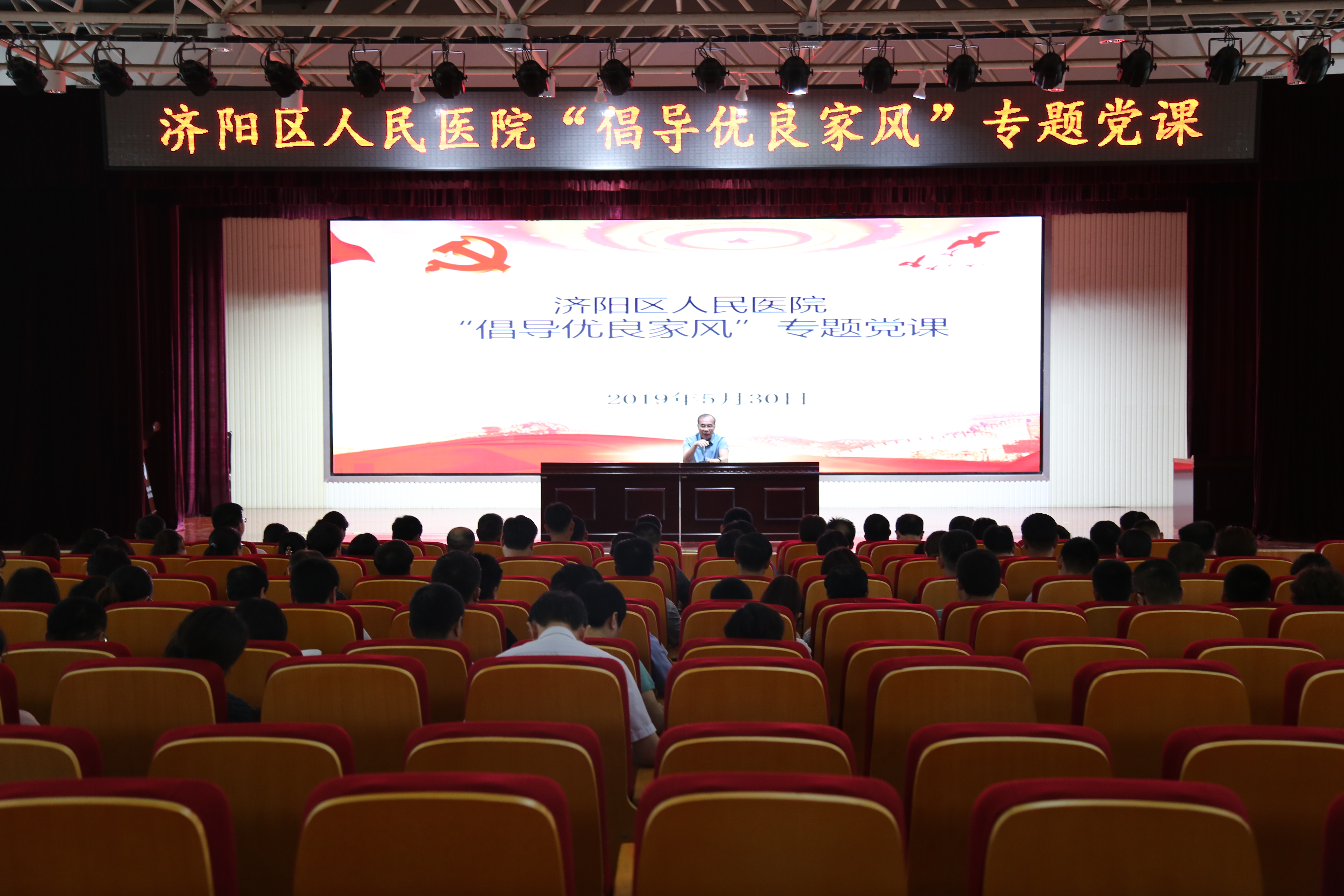 为深入开展“坚持以人民为中心的发展思想”教育活动,教育引导全院干部职工牢固树立以人民为中心的理念, 5月30日,医院党总支副书记张玉海同志以《倡导优良家风》为主题,为医院全体党员上了一堂生动的专题党课,号召全院党员干部积极践行社会主义核心价值观,积极投身好家风的实践养成和自觉传承。