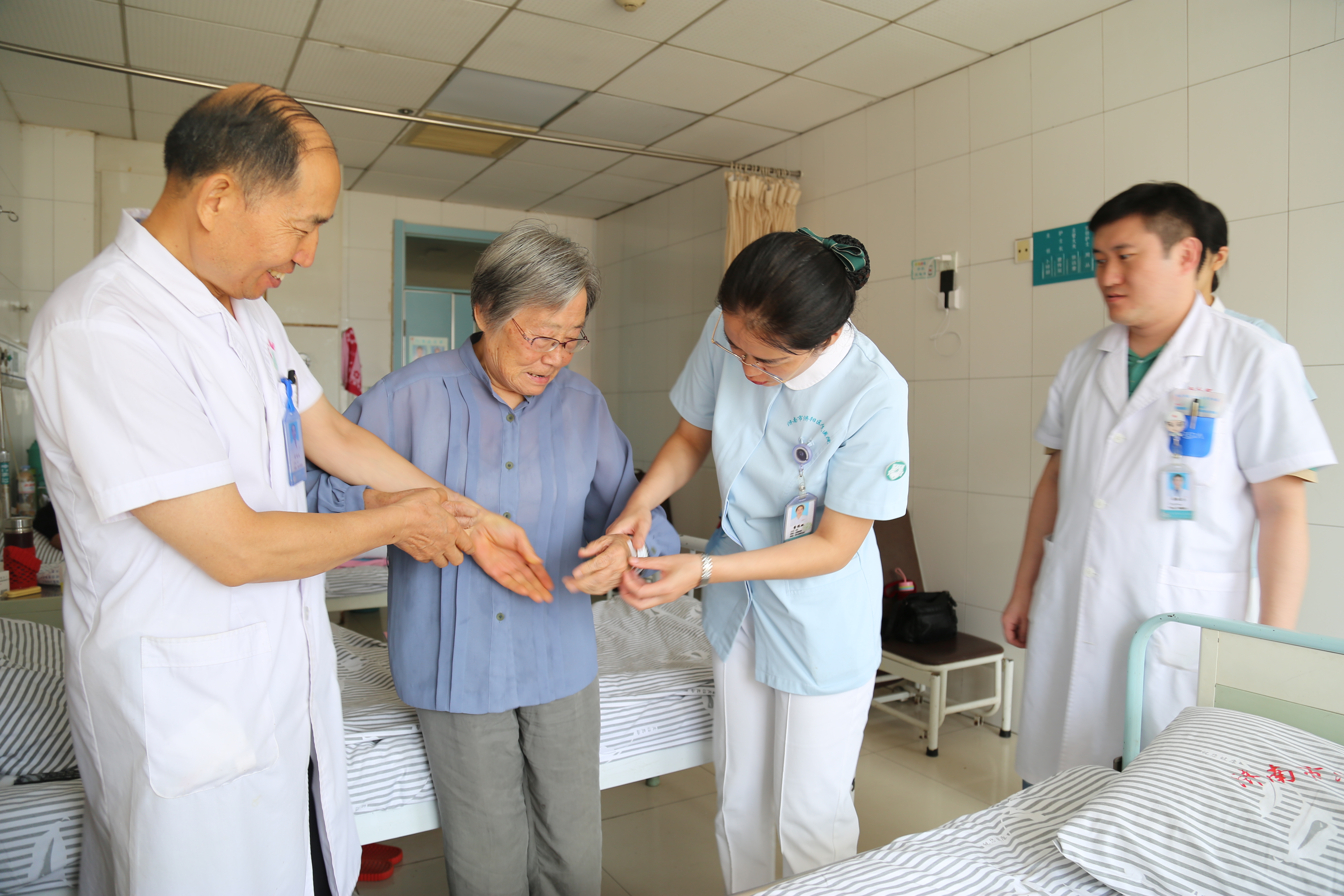 住院期间,在医护人员的精心护理下,老人疼痛症状明显缓解,第二天即可下床,第三天就无需家人扶持可下地自主行走。出院之日,科室人员纷纷来到病房看望,老人高兴之余要来纸笔,激动地写下发自内心的感谢,并对李主任的医术医德赞不绝口。