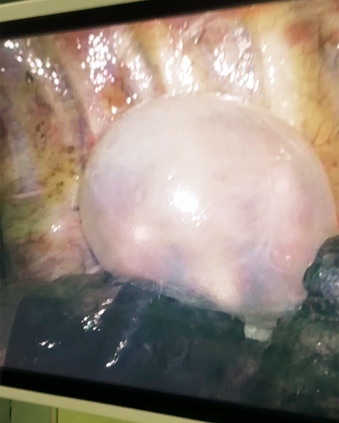 经过精心、充分的术前准备,两天后,由副主任医师任军主刀在主治医师张文建的辅助下为患者在全麻下行单孔胸腔镜下肺大泡切除术,于右胸腋前线第4肋间取了3厘米大小切口进行胸腔内手术,术中发现肺尖部与上腔静脉、锁骨下动脉及胸壁多处致密粘连(由于胸部反复插管导致),分离比较困难,仔细分离粘连,避免伤及大血管,彻底分离粘连后探查发现患者右肺上叶多发肺大泡,上叶后段靠近斜裂处可见一直径最大约7厘米单发肺大泡,肺尖部可见呈簇的多发肺大泡。手术医生分次进行切除,术中精细操作,手术过程顺利,麻醉效果良好。
