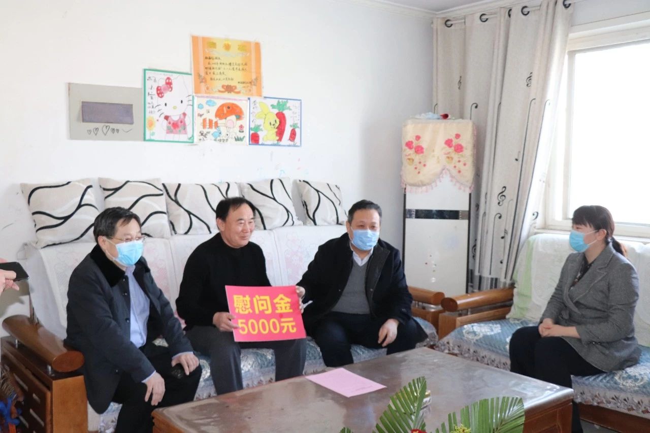 2月9日下午,三位一线人员出征。2月10日上午,医院主要领导上门慰问家人。随后一周的时间里,市直机关工委,区委、区政府主要领导,区总工会、团区委、学校以及社会爱心人士连续慰问家人,“一对一”后勤保障专班及时将慰问金及补助87900元和水果、食品、书籍、绘本、牛奶、鲜花等,第一时间送到每个家庭。