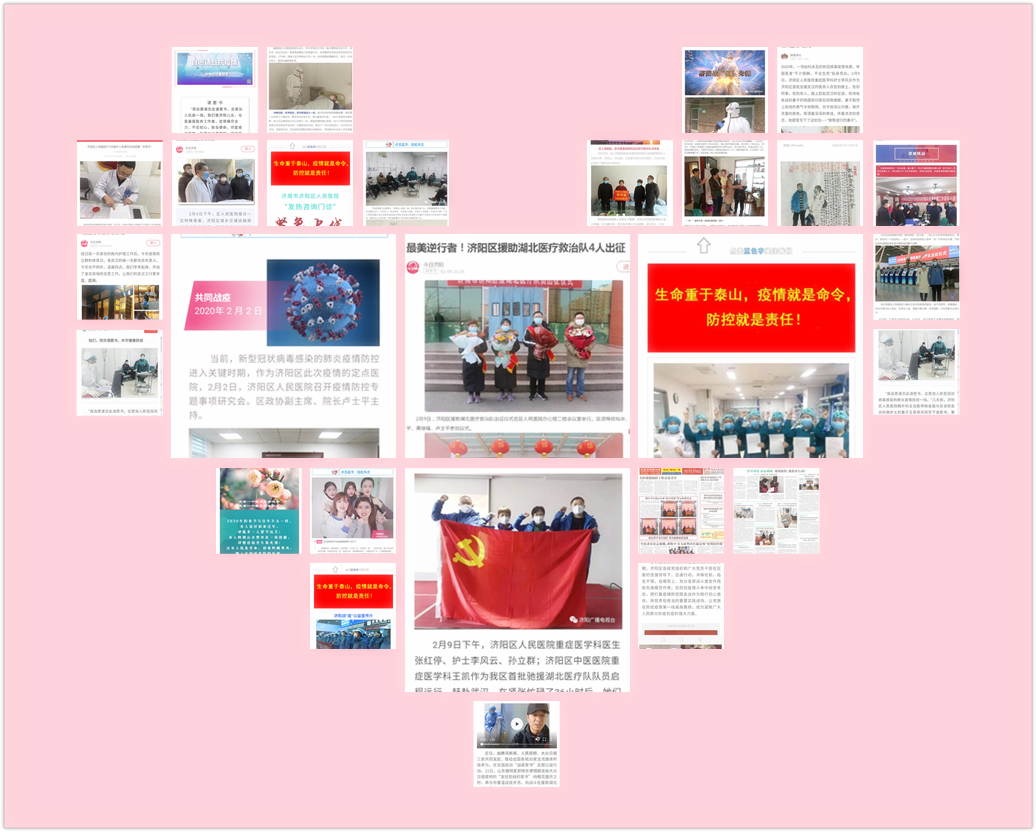 医院先后推出《自愿请战抗疫情,吹响防疫集结号》《致妻子的一封信》《战“疫”最前线,青春永无悔》《战“疫”先锋》《致敬我亲密的战友》等被多家媒体报道。其中,2月21日,《致妻子的一封信》在由腾讯新闻、人民视频、大众日报三家共同发起的全国“战疫家书”主题公益行动中,被录用并由山东籍明星郭晓东朗读。