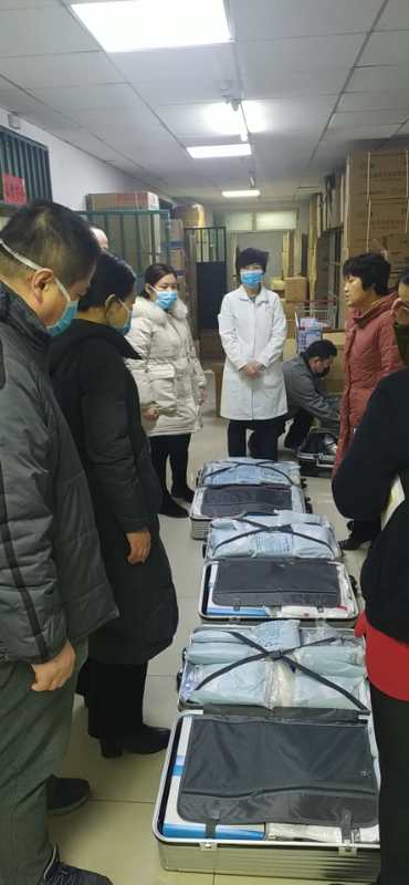 根据赴武汉文件要求,及时为一线人员调配各类物资,配备了常用药品、防护用品、生活用品和食物共计70余个品种、近300件物品,包括防疫口罩、各种防护服、鞋套、药品、消杀物品及日用品。在得知武汉队员住宿条件差后,及时给3位援鄂一线人员购置羽绒服、保暖衣、电热毯等。考虑队员赴武汉后对南方饮食习惯不适应,又及时准备了方便面、饼干、巧克力、火腿肠、水果。3位队员赴武汉后,医院及时为他们购买了电话卡,费用由医院负担,切实保证通讯畅通。