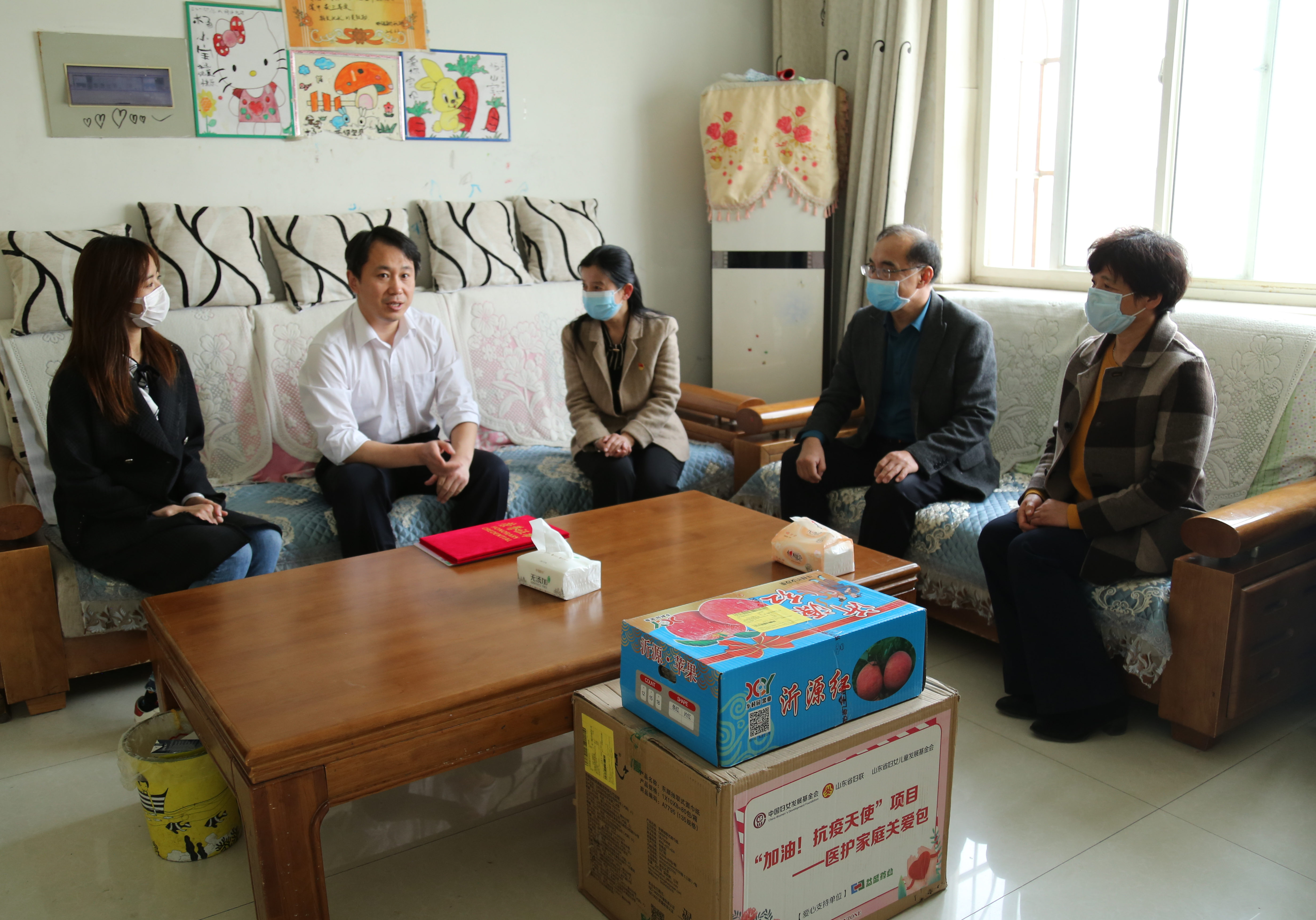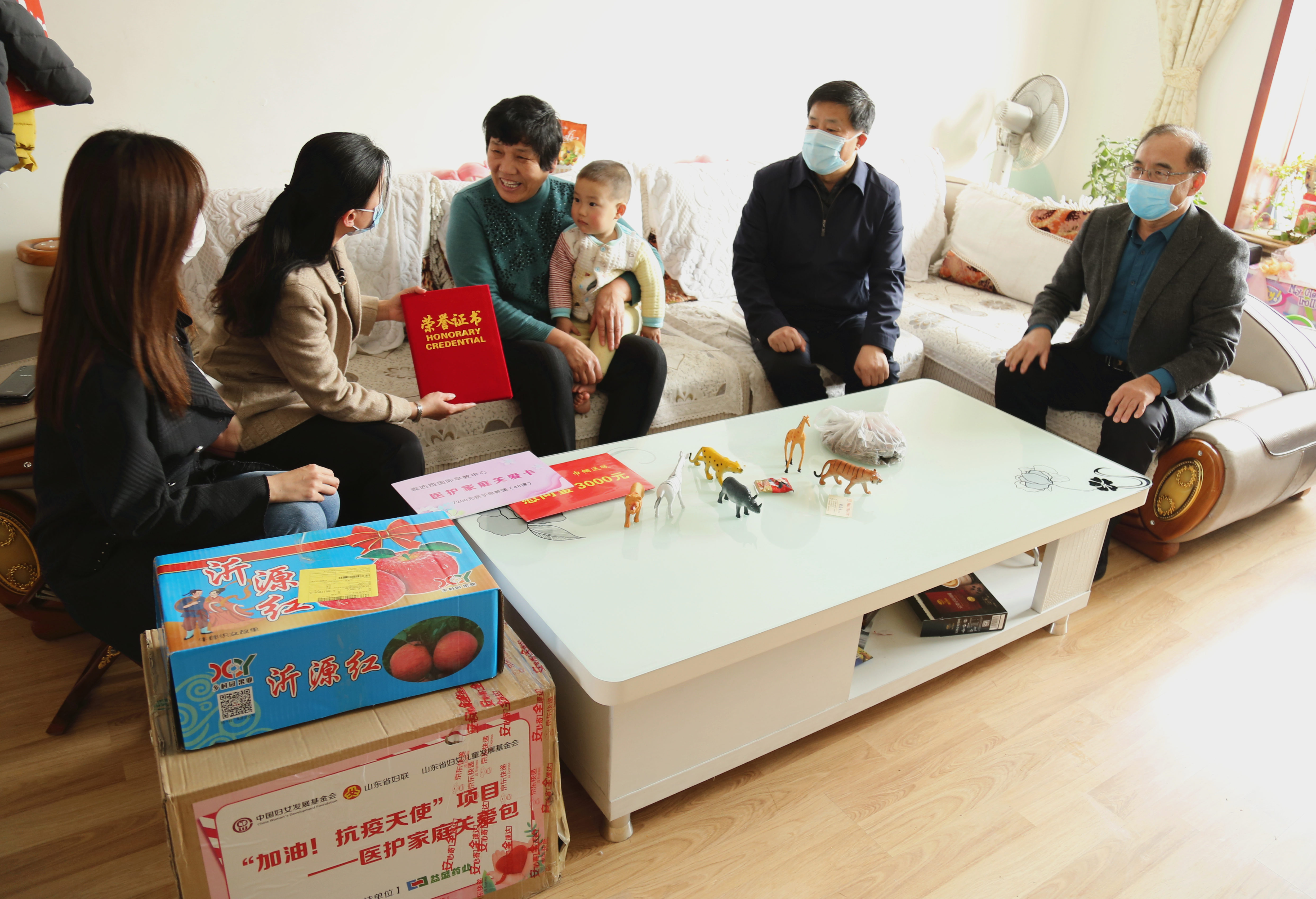 随后,在医院党委副书记张玉海、工会主席徐吉兰的陪同下,张部长一行来到援鄂人员家中,为家属送去了3000元慰问金,为孩子定制了家庭教育专业早教服务卡并转交了省妇联价值800元的“医护家庭关爱包”。
