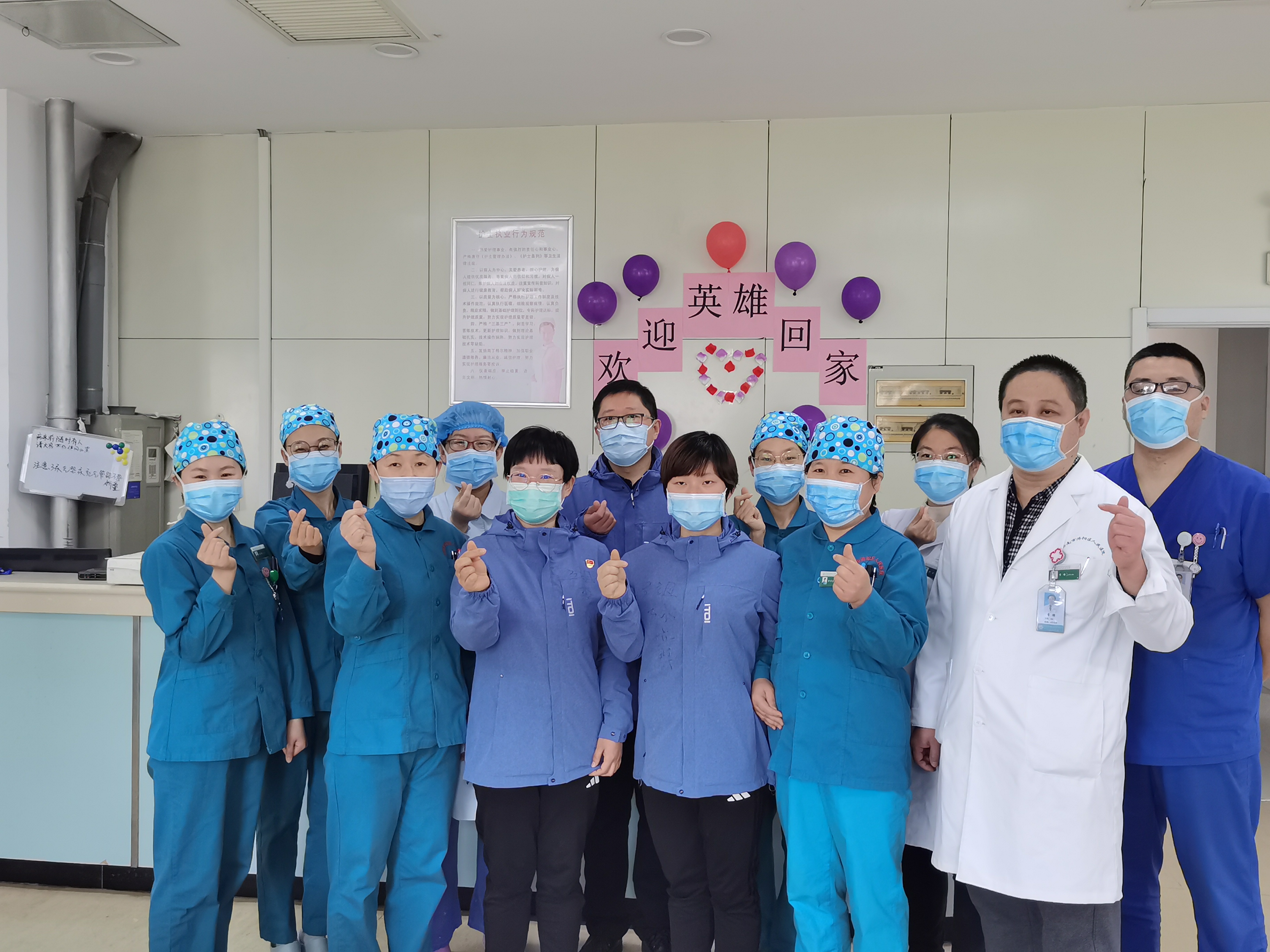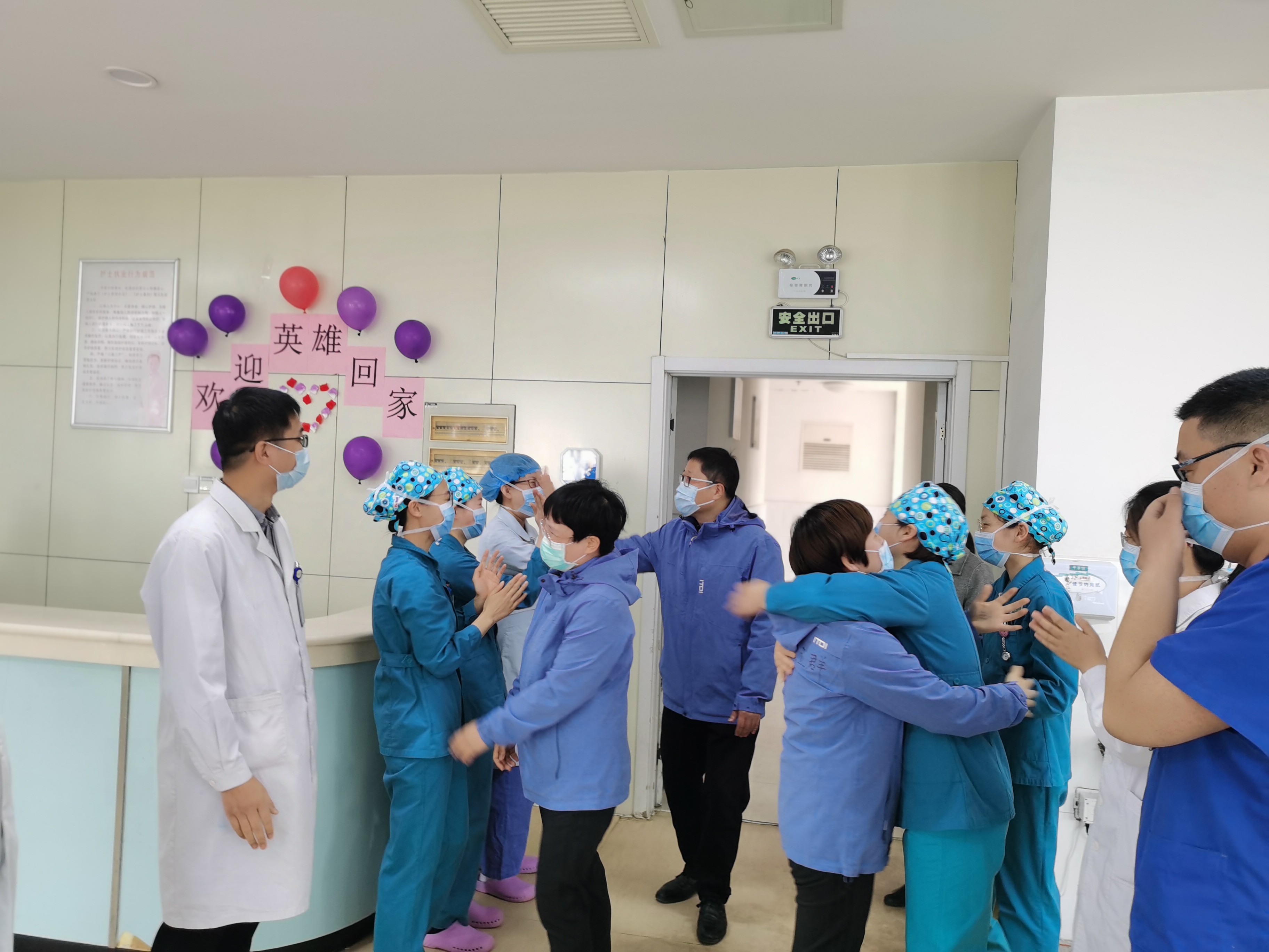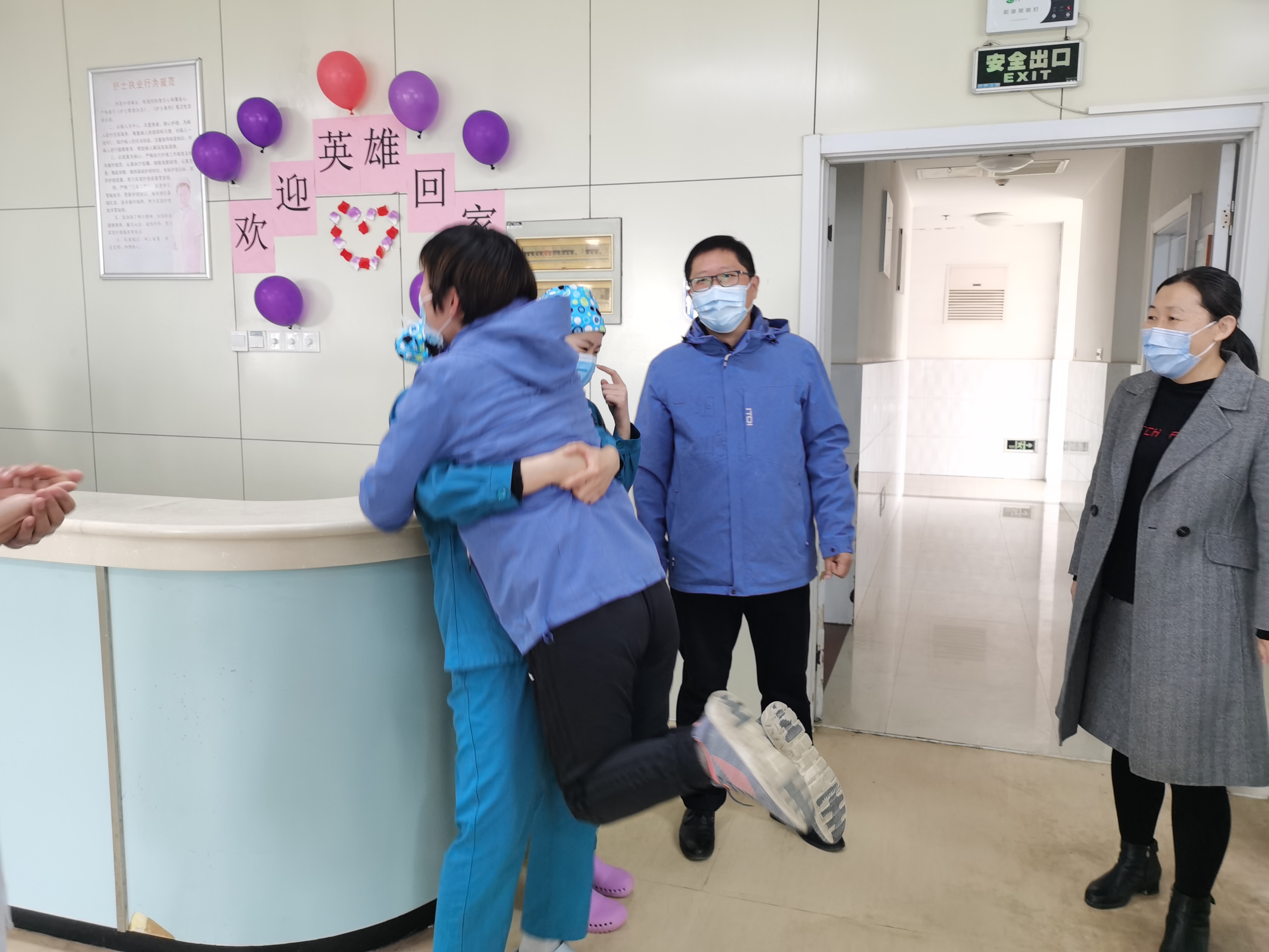 4月13日清晨,在阵阵掌声和同事们的欢迎声中,我院三名援鄂勇士张红停、李风云、孙立群走进阔别两月有余的医院。为欢迎他们的正式归队,医院在二楼会议室简单而又隆重地举行了“欢迎援鄂勇士归来座谈会”。