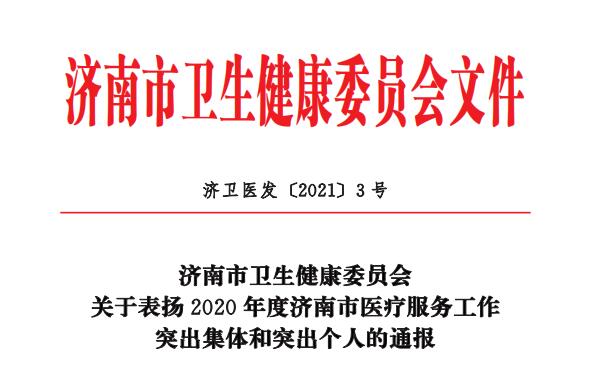 3月30日,济南市卫健委下发了“关于表扬2020年度南市医疗服务工作突出集体和突出个人的通报”,公布了 2020年度济南市医疗服务工作突出集体和突出个人名单,区人民医院获得多项荣誉。医院党委副书记高峰获“济南市医院标准化建设突出个人”称号;医务科主任张义勇获“济南市医政 (医务)管理工作突出个人”称号;急诊科副主任卢士勇获“济南市院前急救工作突出个人”称号;卢静静获“济南市优质护理服务工作突出个人”称号;检验科张辉获“济南市临床输血管理工作突出个人”称号;院感科被评为“济南市医疗机构医院感染管理突出集体”;感染科被评为“济南市医疗机构疫情防控突出集体”。