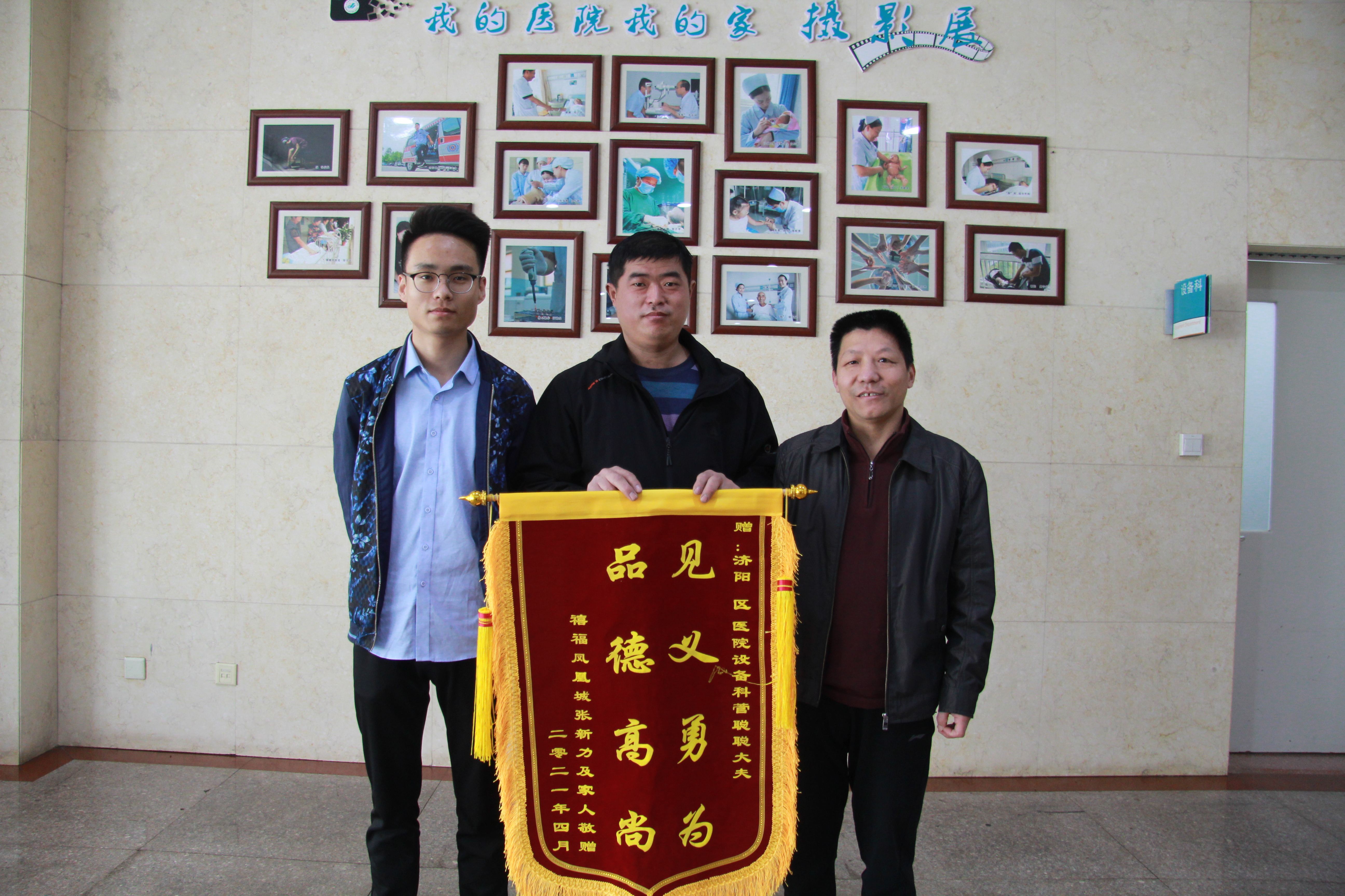 4月21日,济阳区人民医院设备科收到了一面锦旗,锦旗上“见义勇为 品德高尚”八个大字确让设备科李善军主任一头雾水……