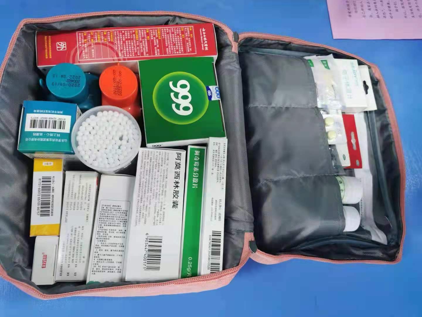 你们好!首先祝贺你们考入了自己满意的大学,即将开启自己新的人生旅程。外面的世界很精彩,外面的世界也很复杂,离家在外的你们要学会照顾自己,尽快适应新的环境,融入新的集体。在此,我们也为你们准备了一份礼物,一个“便携应急药包”,以表祝贺的同时,也是希望你们照顾好自己,你们的平安健康,永远是父母最大的牵挂。