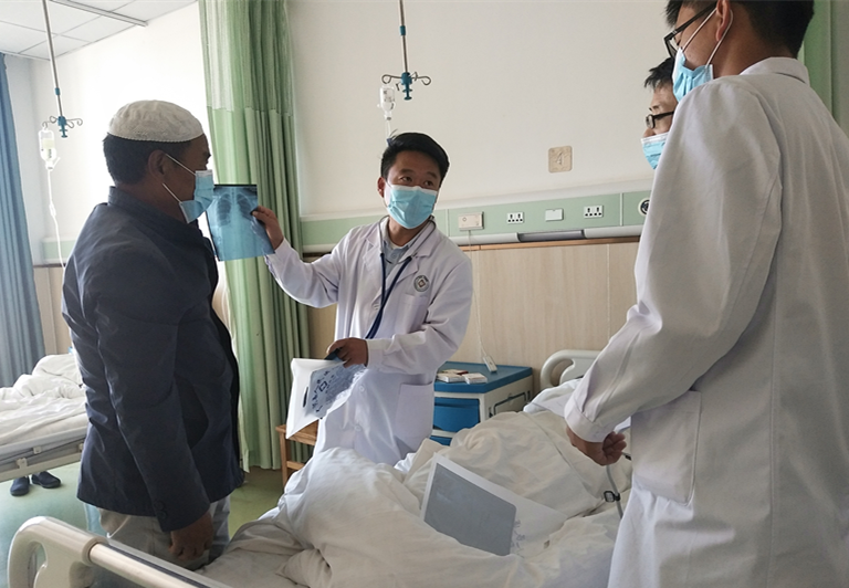 从医者当有大爱,当地的淳朴民风深深打动着他,当地的落后观念也深深震撼着他。这一切让他坚定了支医的决心,也更坚定了他身为医者的仁人之心。每天一早,何邦志就来到病房查看病人,日常查房中,他不厌其烦的讲解,手把手的示教,耐心解答当地医务人员的问题,不放过每一个传帮带的机会。从无到有,他利用自己的技术专长带领和指导科室成功开展纤支镜检查23例,刷检、灌洗、活检项目均已开展,填补了广河县该项技术上的空白。