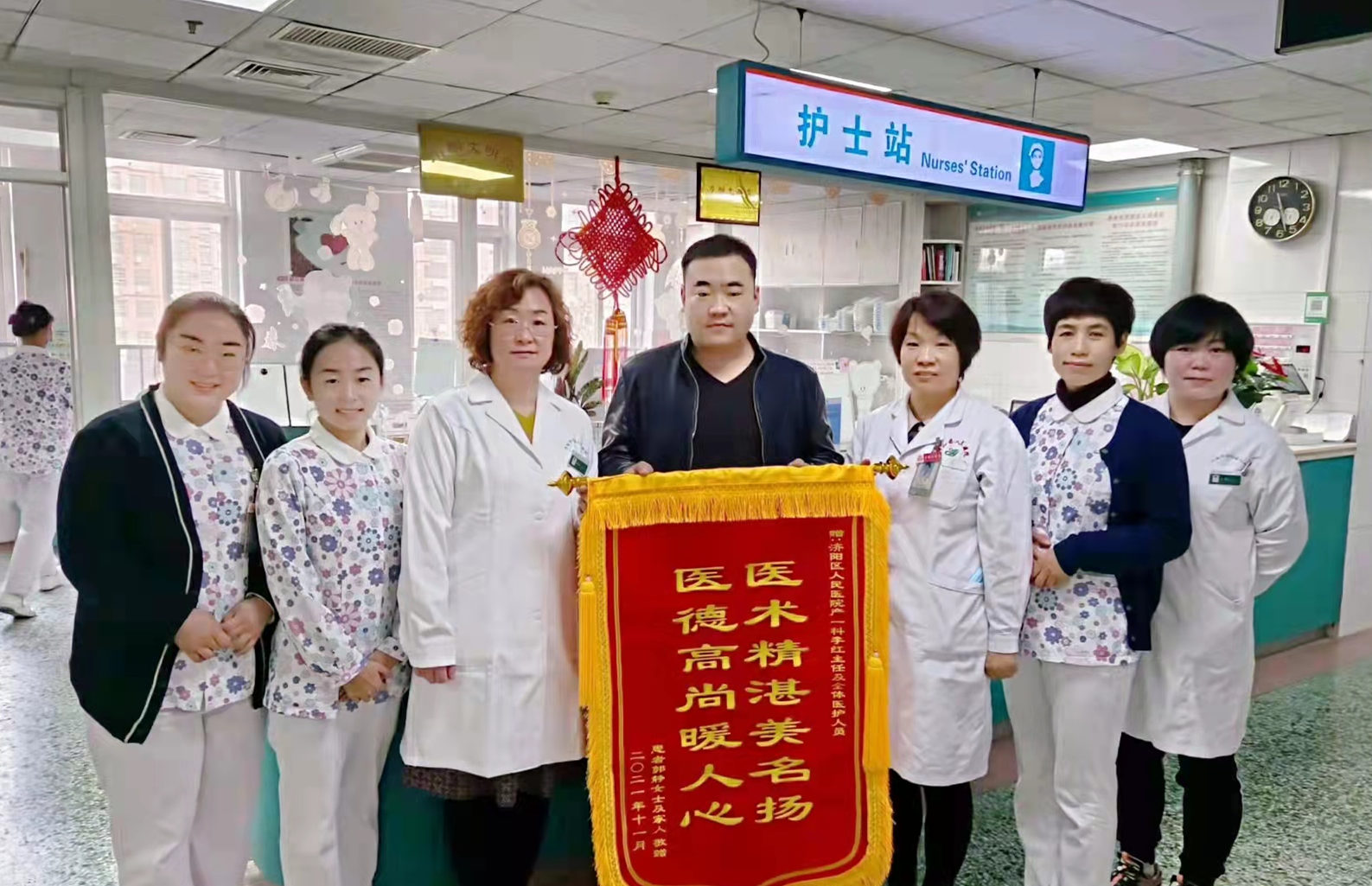 此次手术的成功,不仅免去了患者一家到上级医院的奔波,更成功保住了其子宫,迎来了新生命。11月19日,郭女士的家属特将一面锦旗送到护士站,以表感激之情。