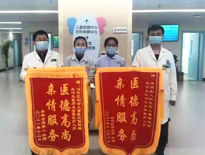 12月份,伴随着医院妇儿院区的顺利搬迁,妇儿院区儿保科的工作也早已步入正轨,整个搬迁过程中,丝毫没影响到对患儿的治疗。喜上加喜,儿保科为宝宝顺利完成治疗后,接连收到两面来自宝爸、宝妈送来的锦旗,“医德高尚,亲情服务”表达了他们满满的感激。