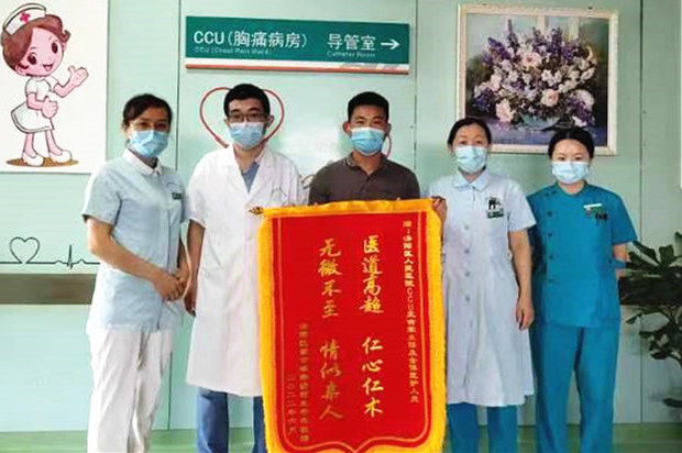 6月25日,是CCU患者王阿姨痊愈出院的日子。王阿姨脸上洋溢着幸福的笑容与家属一起对CCU医护人员百般感激,特送来锦旗,“医德高尚,仁心仁术;无微不至,情似亲人”以表谢意。