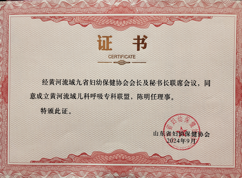 9月13、14日,首届黄河流域儿童健康学术会议暨黄河流域儿童健康联盟成立大会在山东省济南市成功举办。经黄河流域九省妇幼保健协会会长及秘书长联席会议,同意成立“黄河流域儿科呼吸专科联盟”,济阳区人民医院加入专科联盟,成为理事单位,儿三科陈明副主任担任理事。