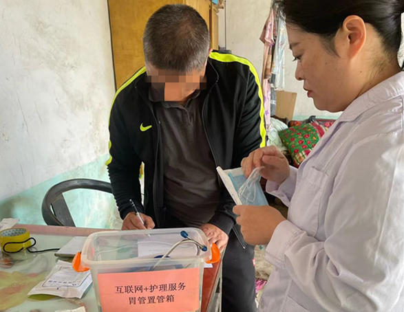 适逢九九重阳日,神经内二科主管护师张小丽的手机响起,原来是九州医护APP发来提示:“垛石老杨沟村陈大娘需要插胃管”,张护士在详细了解陈大娘的基本情况后,立刻备齐所需医护用品,并与主管护师寇倩共同驱车前往陈大娘家中。见到陈大娘后,张护士一边温柔地与大娘交谈,缓解她的紧张情绪,一边熟练地进行操作,不一会儿,鼻胃管插入顺利完成,大娘的痛苦得到了缓解,家属们悬着的心也终于落了地。随后,张护士向大娘家属详细讲解了长期留置鼻胃管的注意事项,并告知防导管滑脱的几种办法。大娘家属感激地说:“济阳区人民医院的护士服务热情,耐心又专业,为患者着想,上门服务真是为我们提供了方便。”听到家属满意的话语,这一刻,她们觉得所有的付出都是值得的。
