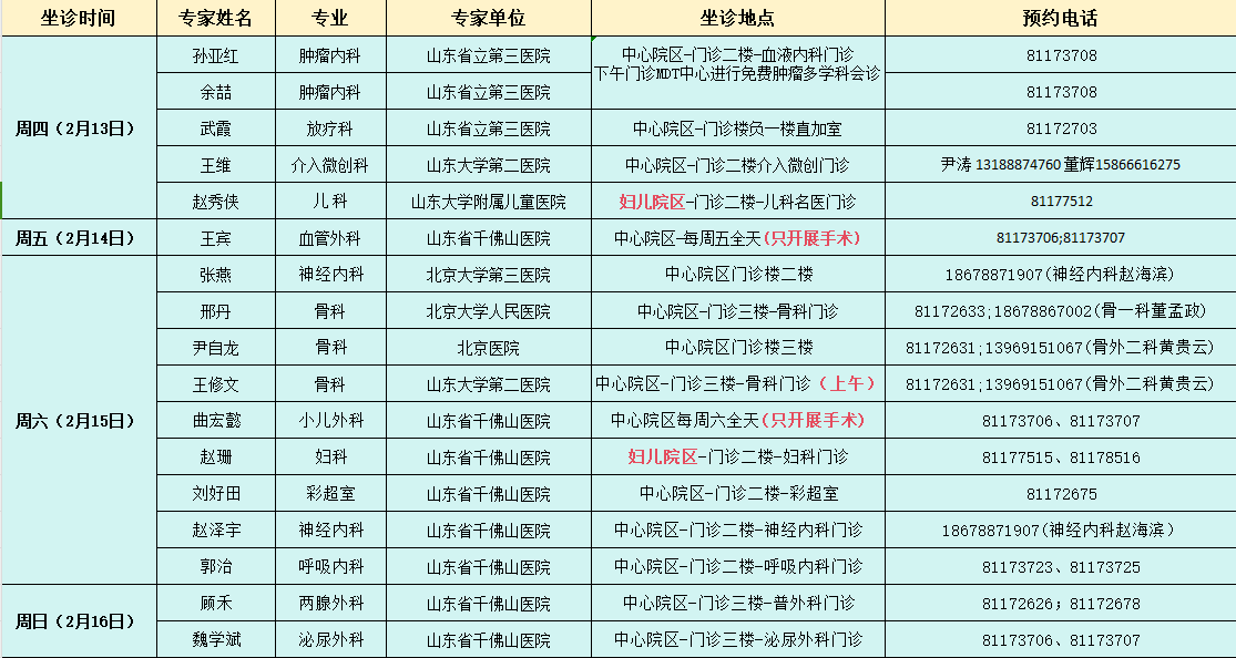 【专家动态】| 名医专家坐诊信息一览表 (2.13—2.16)