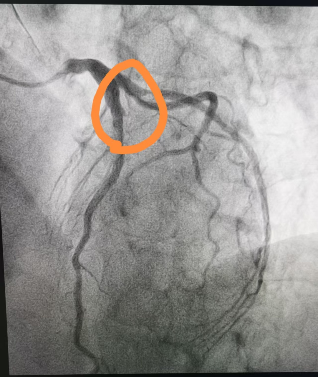 “时间就是心肌,时间就是生命!”心内三科谈金强主任和张用之主治医师立即启动急救绿色通道,为患者急诊行冠状动脉造影(CAG)以明确冠脉病情。造影结果显示:患者对角支自开口处100%闭塞!如此隐蔽的病变,不仅极度考验术者的观察力,更对冠脉解剖结构的熟悉程度提出极致挑战,稍有疏忽便可能漏诊,酿成不可挽回的结果!